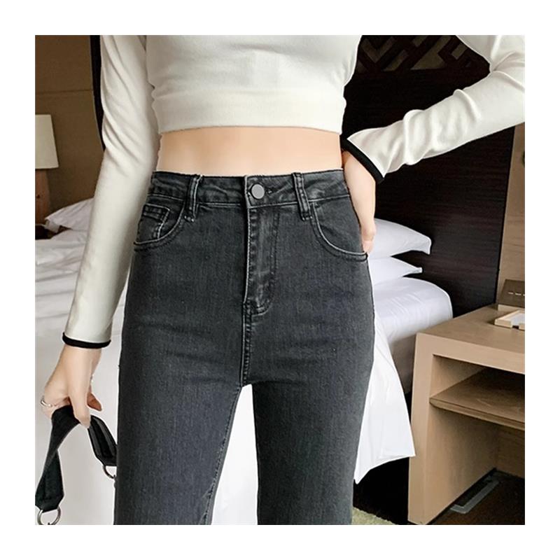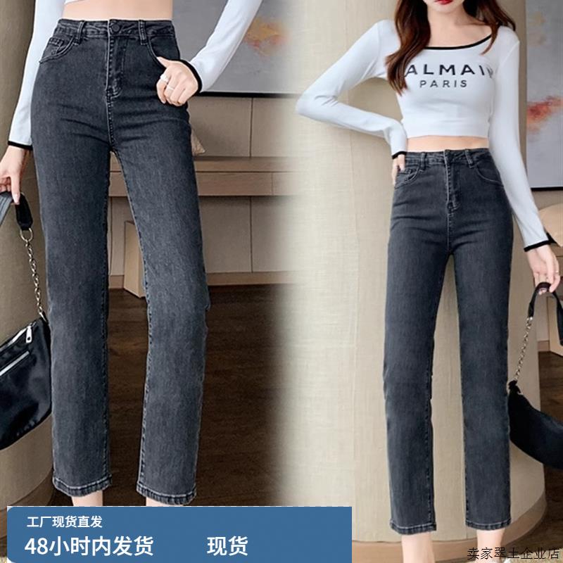 烟灰色车脚直筒牛仔裤女2025年新款春秋高腰显瘦弹力烟管裤子百搭