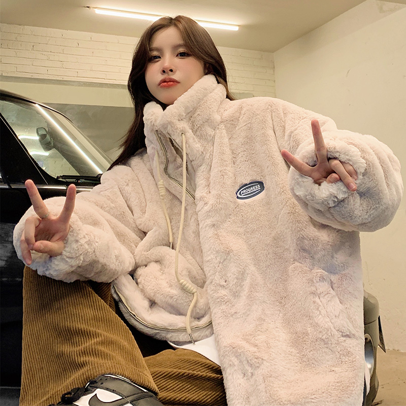 新款羊羔毛外套女冬仿兔毛皮草中长款加厚毛绒学生棉服