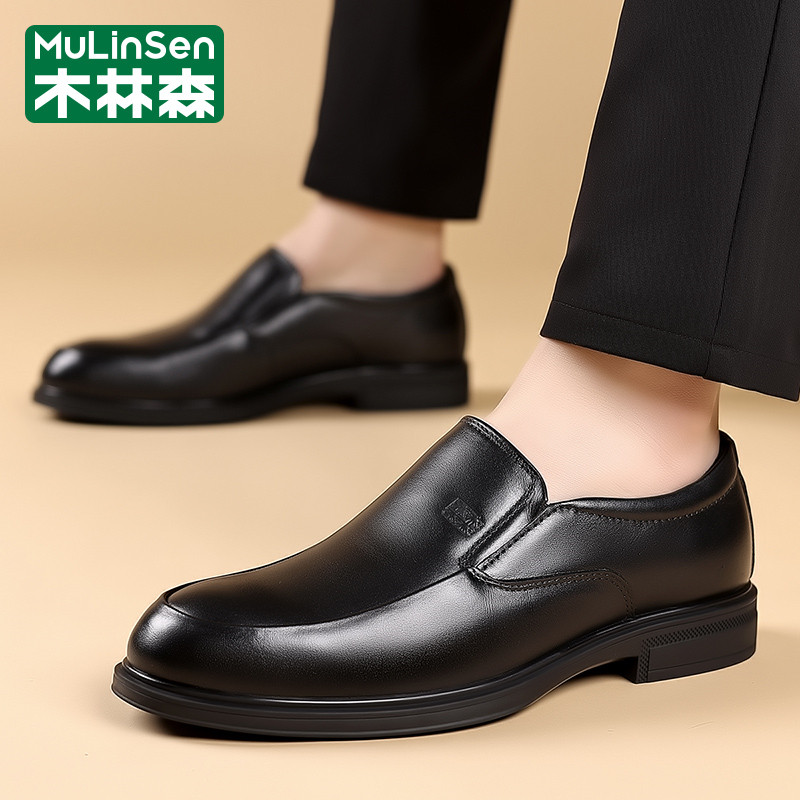 木林森皮鞋男款冬季休闲商务头层牛皮一脚蹬爸爸乐福工装马丁潮鞋