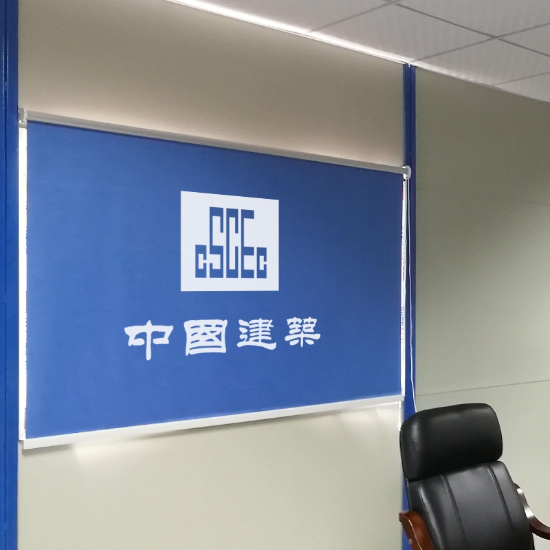 中国铁建活动板房小窗户印字彩钢房卷帘中建蓝临建房工地简易窗帘