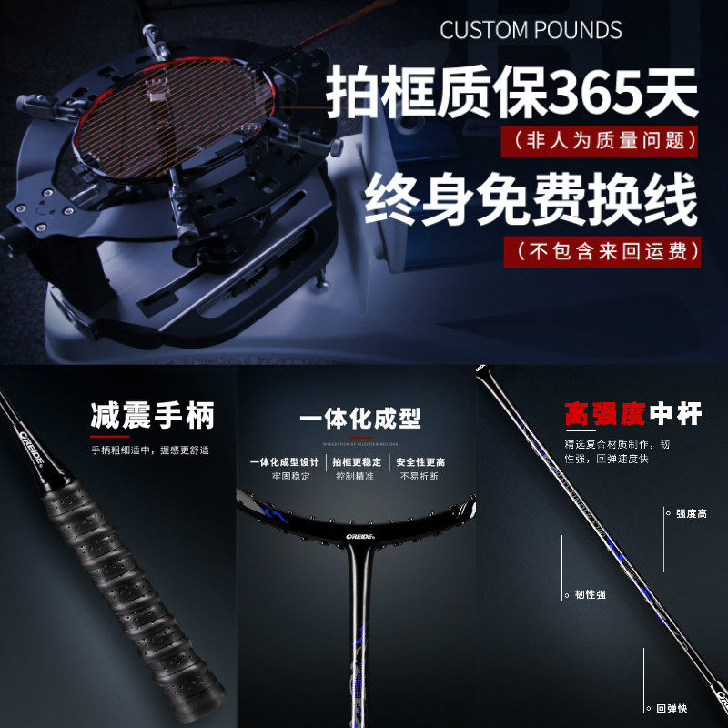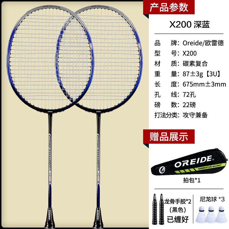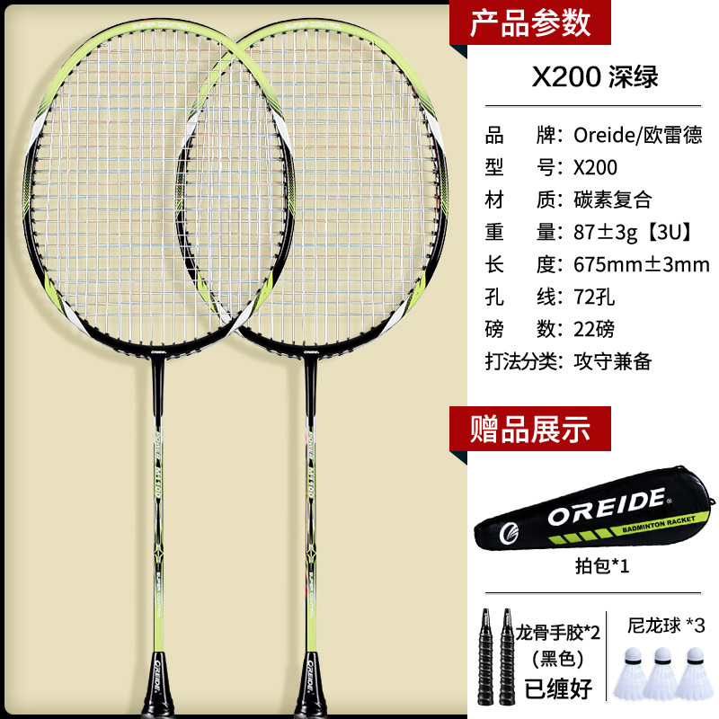 欧雷德羽毛球拍正品旗舰店碳素纤维单双拍进攻耐用型儿童套装耐打