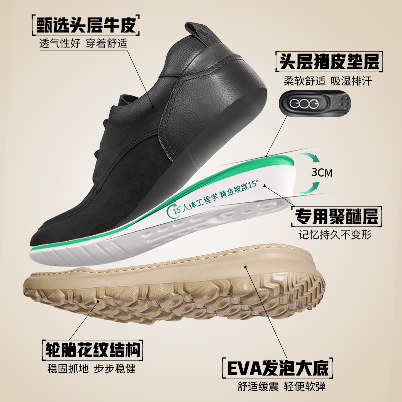 高哥增高鞋男款秋季新款潮流男鞋商务休闲皮鞋隐形内增高懒人鞋子