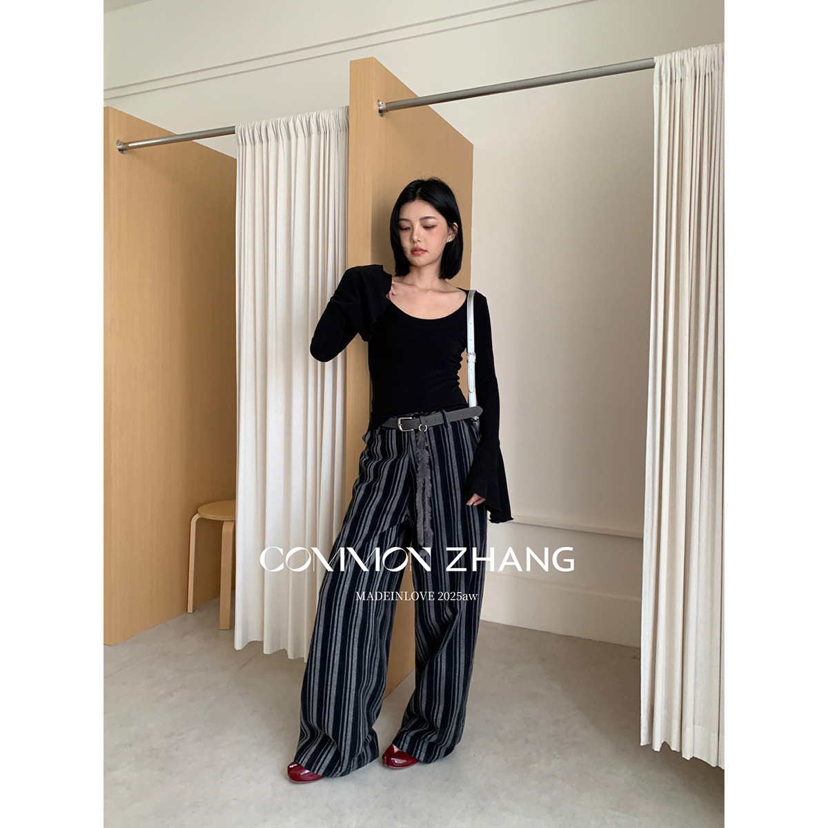 CZ ZHANG秋喇叭袖圆领套头针织T恤女修身显瘦俏皮打底衫 B40141