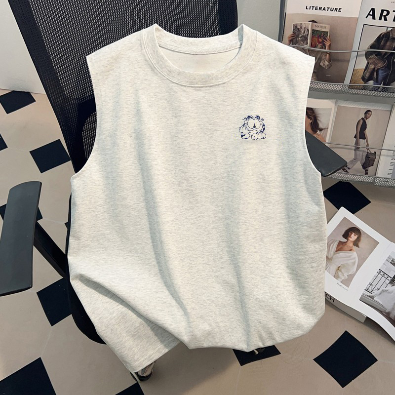 美式重磅纯棉背心T恤男女款夏季潮牌印花ins小众情侣装无袖上衣