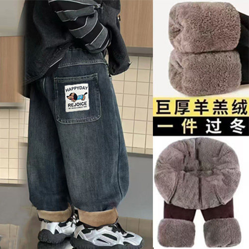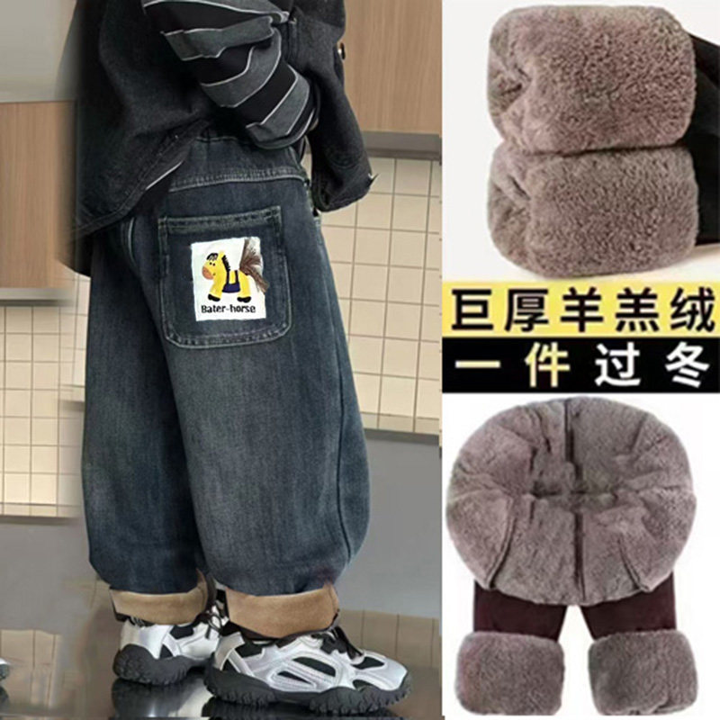 男童加绒牛仔裤秋冬装儿童加厚裤子2025洋气酷帅男孩冬装糕糕绒