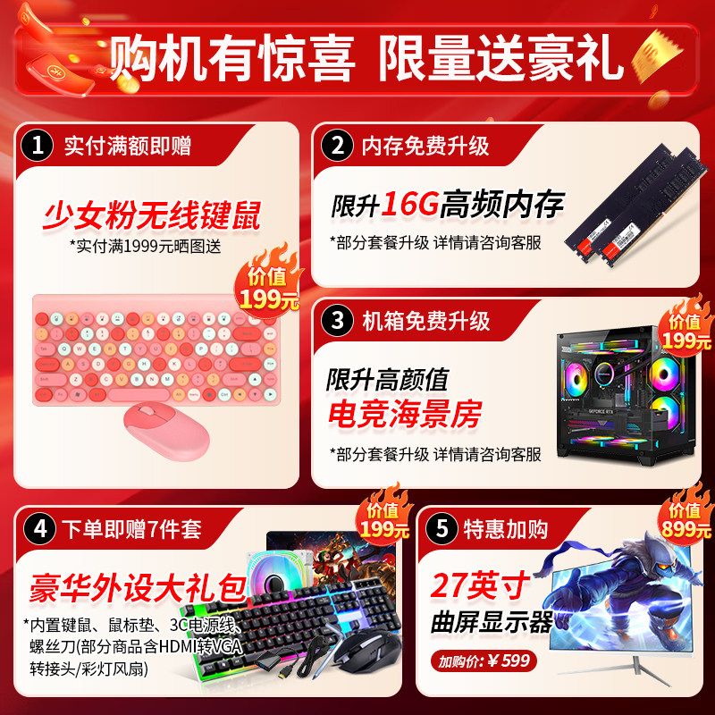 酷耶英特尔升13代酷睿i5i7台式电脑主机商务办公家用组装整机娱乐