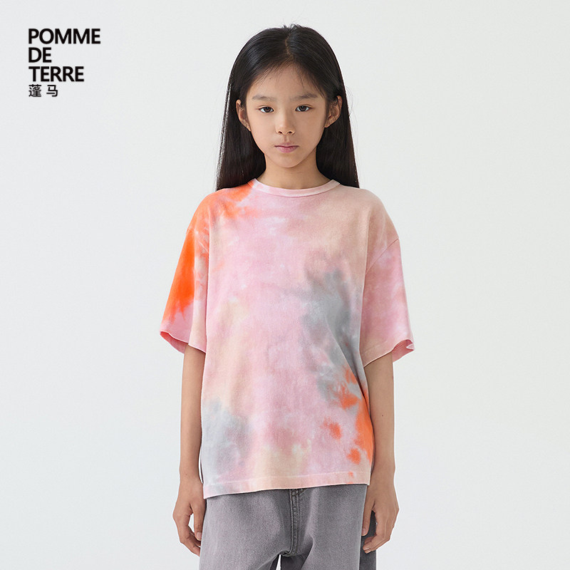 [扎染新款]蓬马大童T恤短袖竹节棉25春装男女儿童pomme de terre