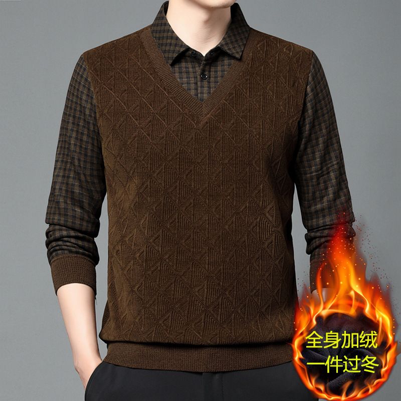 假两件爸爸装加厚毛衣男冬季新款商务休闲针织打底衫简约高级