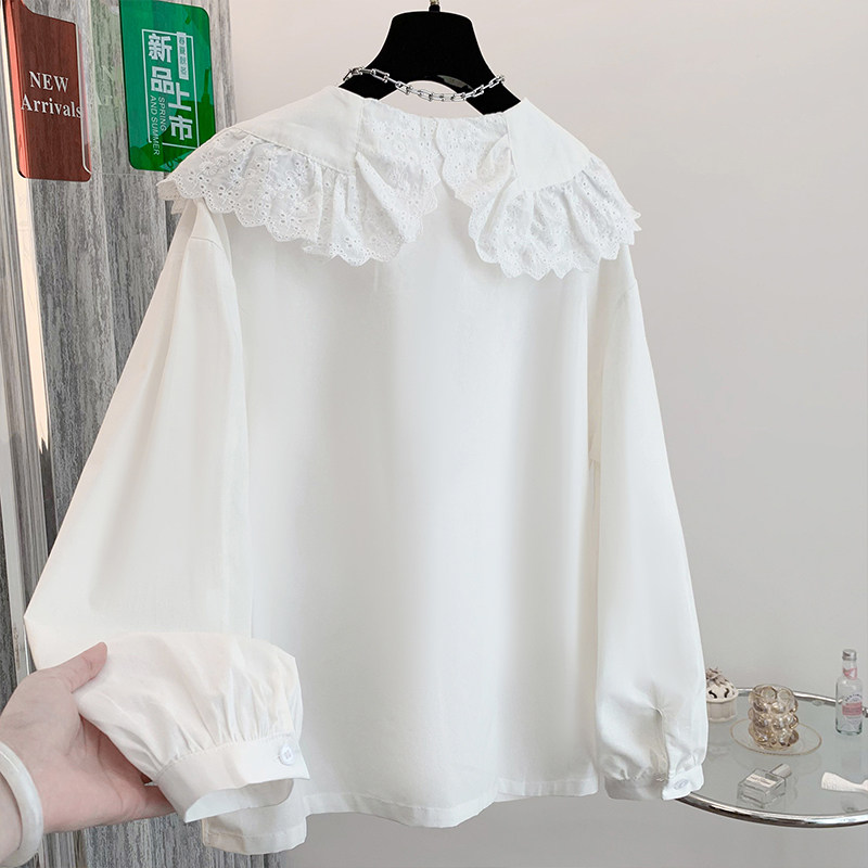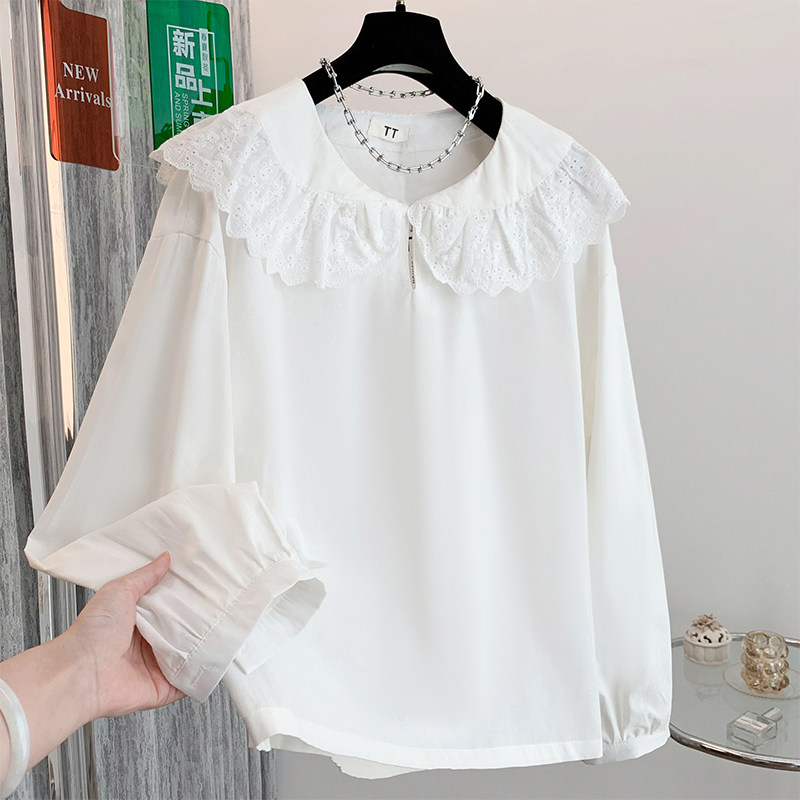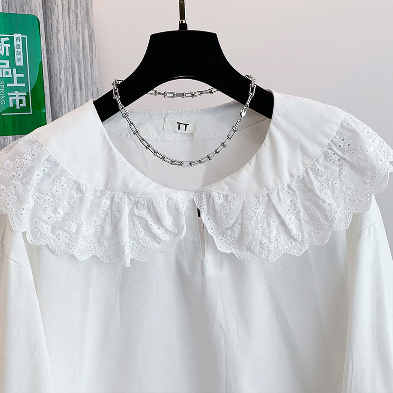 玖月2026早春气质娃娃领甜美设计白色棉麻料舒适衬衫