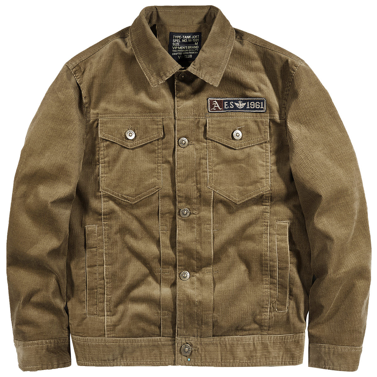 VIP复古夹克男青年翻领灯芯绒外套春秋大码宽松工装休闲上衣潮流