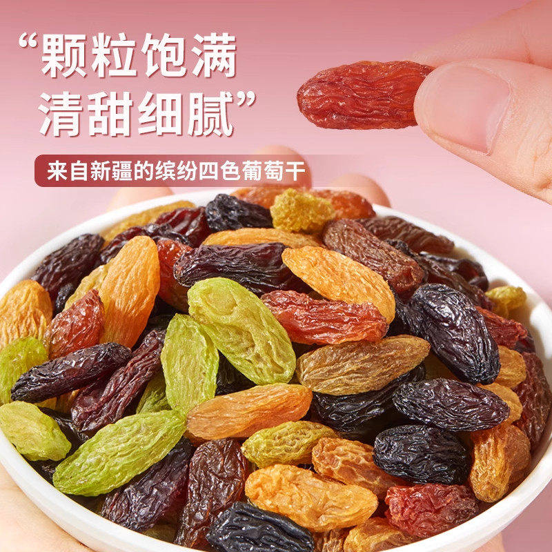 新疆特产四色葡萄干官方旗舰店特级超大免洗无沙葡萄干提子干即食