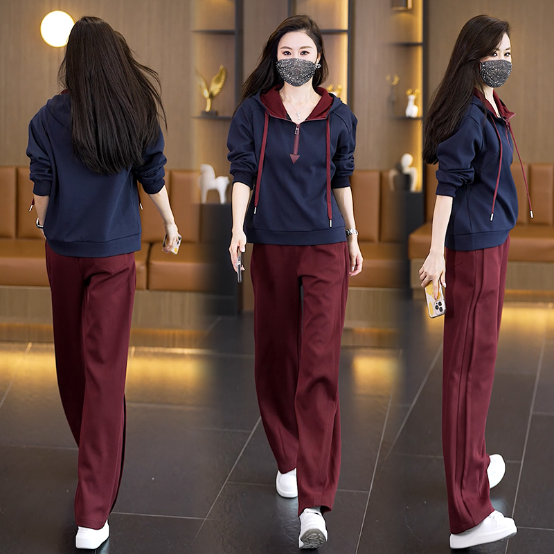实拍休闲套装2025秋季新款时尚洋气减龄显瘦连帽卫衣阔腿裤两件套