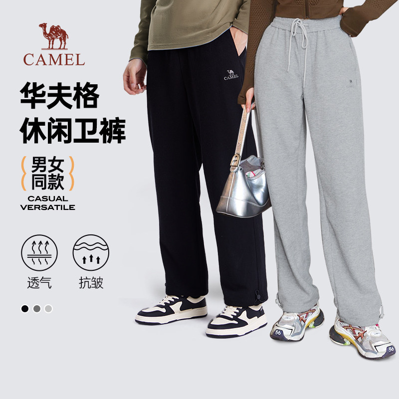 骆驼男装女款运动裤秋冬季2025宽松抗皱华夫格卫裤情侣款休闲裤