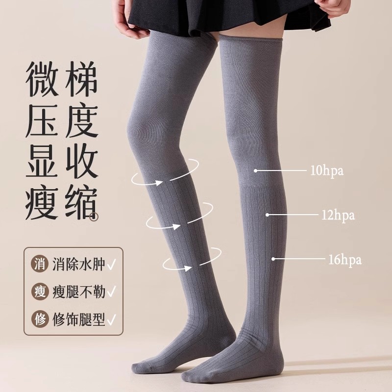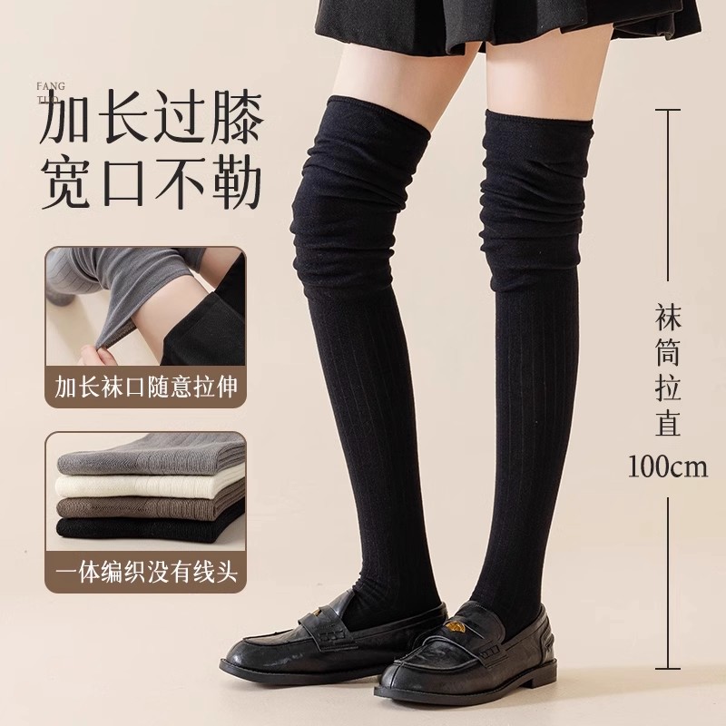 白色袜子女秋冬季纯棉大腿袜jk过膝堆堆袜防滑显瘦小腿袜长袜高筒