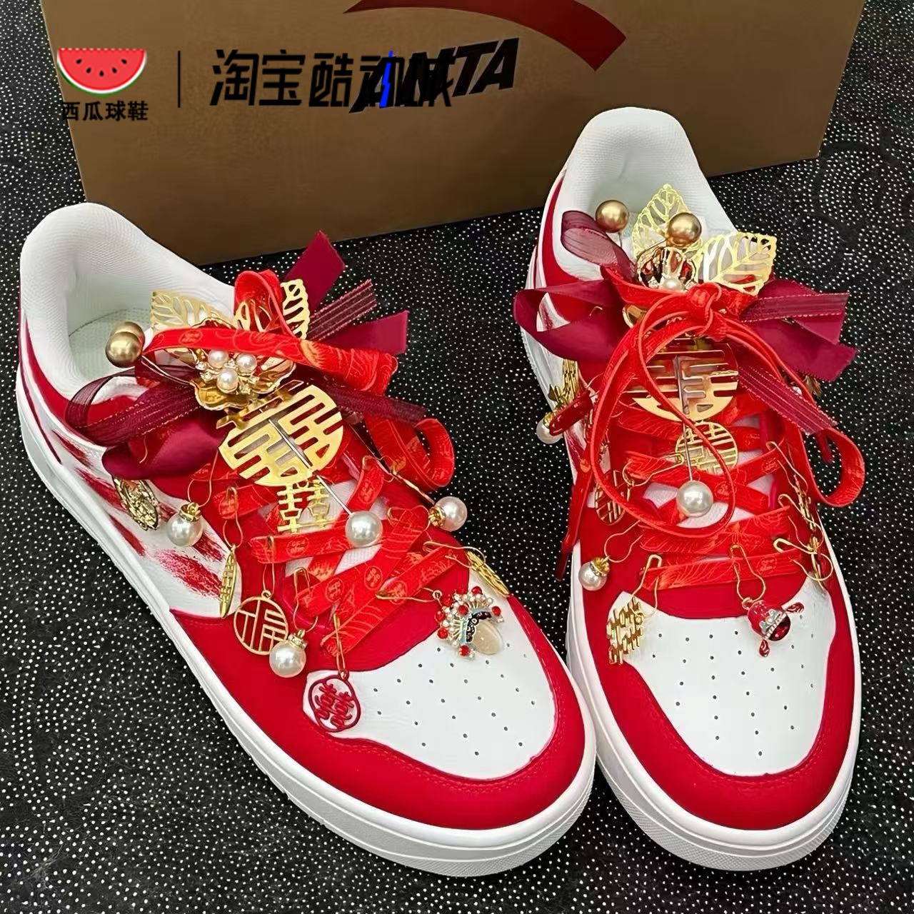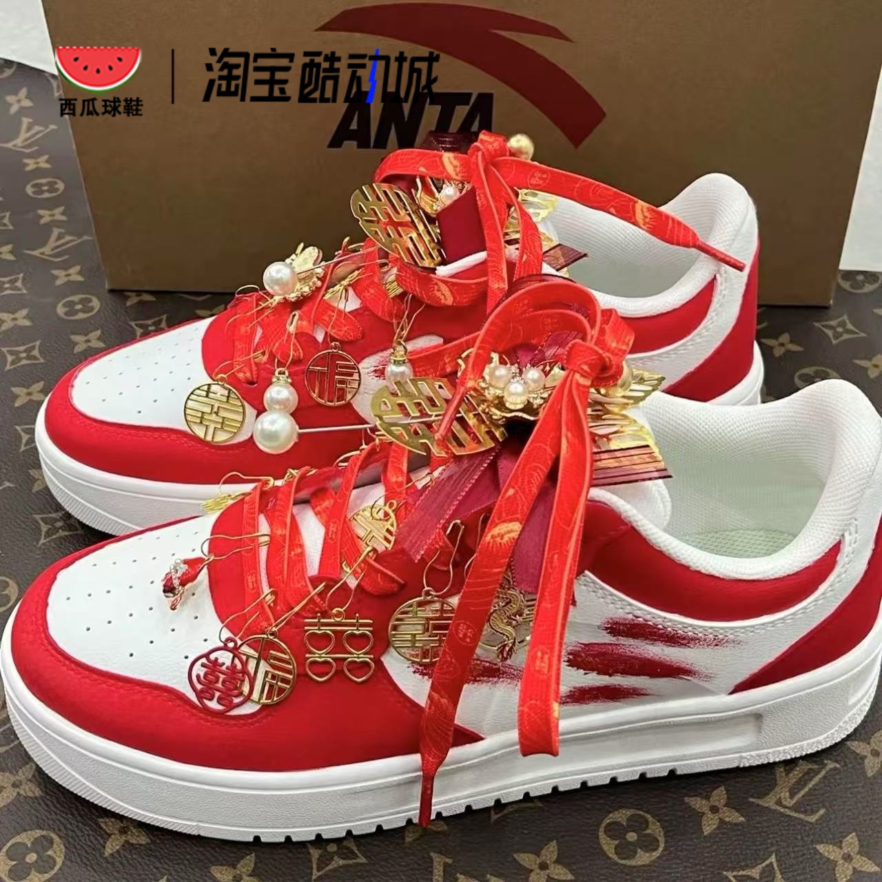 西瓜球鞋定制 Anta安踏 生活系列 囍韵凤履 精致华丽婚鞋低帮板鞋