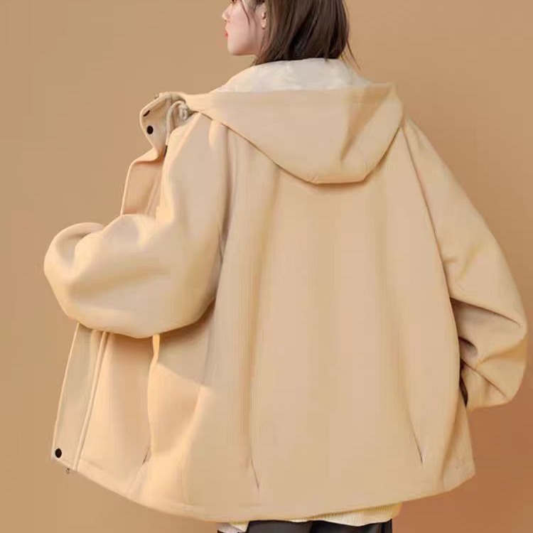 胖妹妹毛呢外套女秋冬小个子感宽松显瘦呢子大衣连帽大码女装