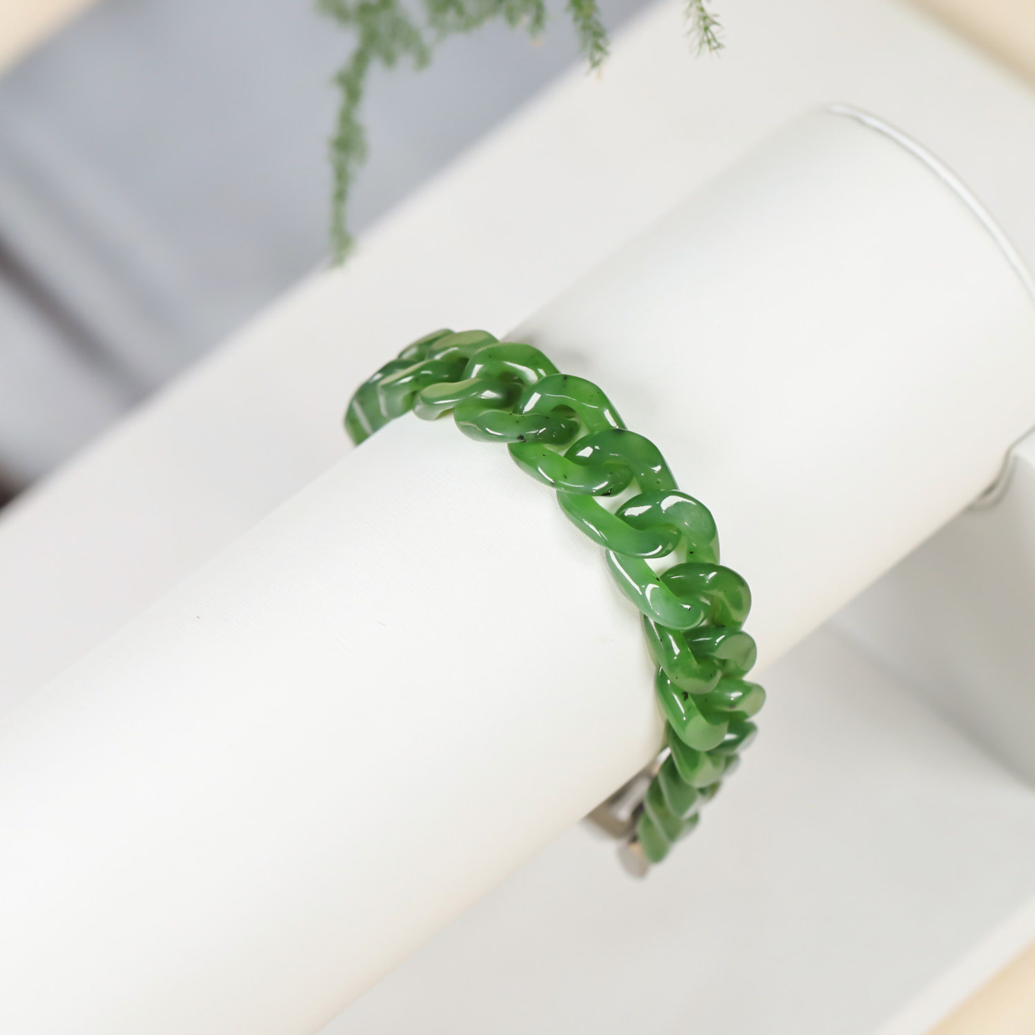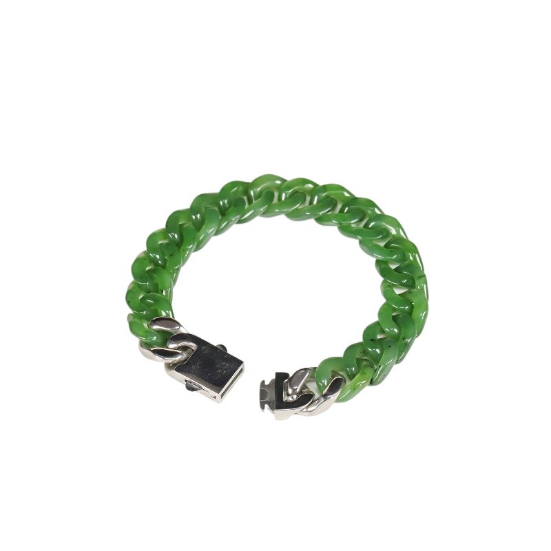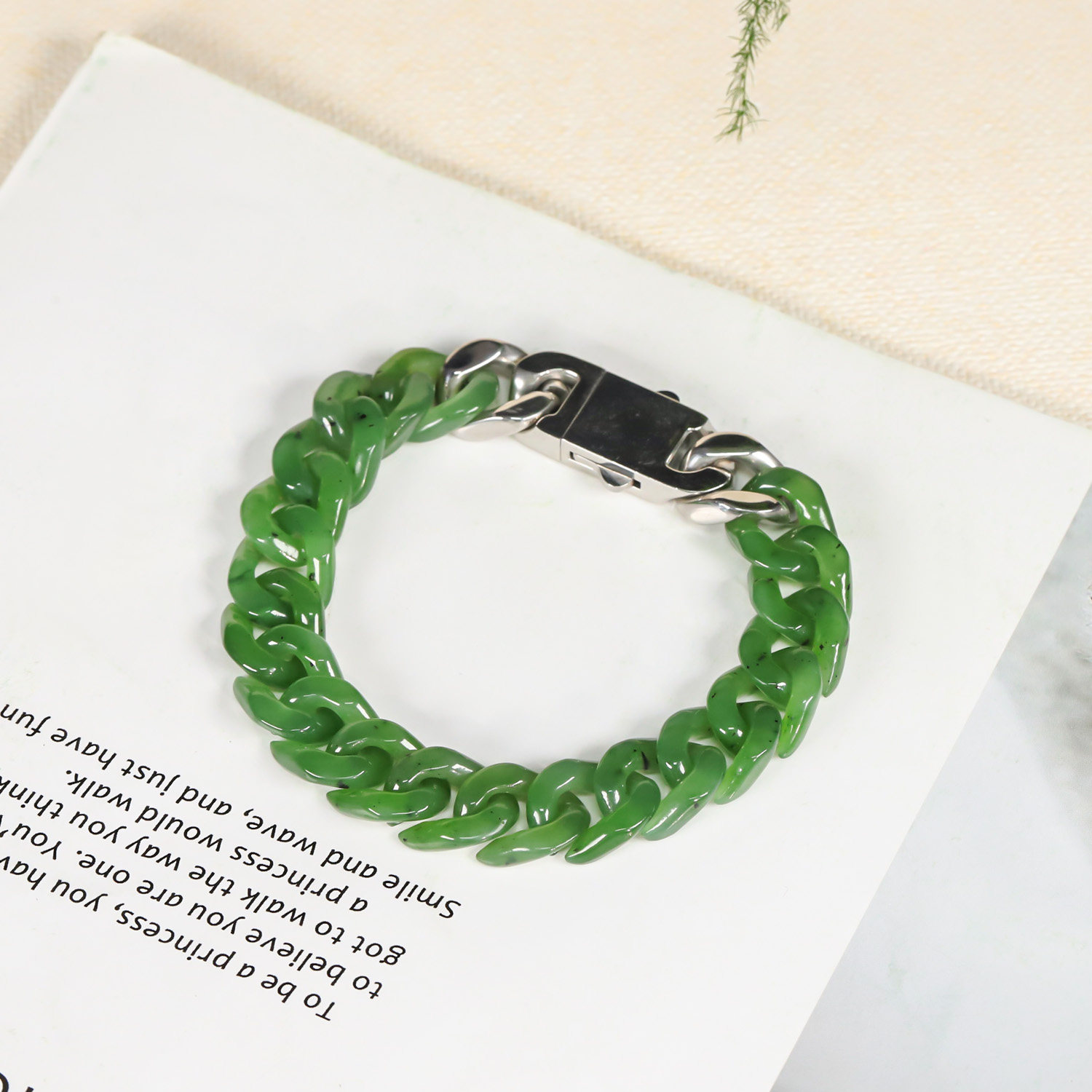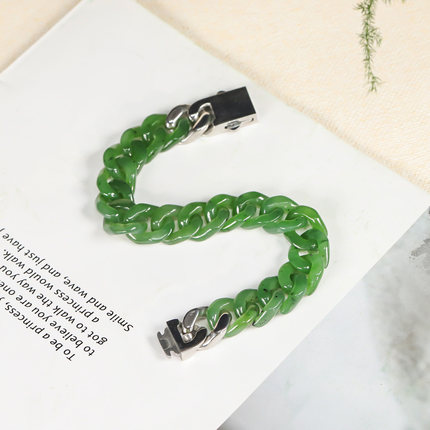 天然A货新疆和田玉碧玉冰种古巴手链玉石钛钢嘻哈风格男女潮手饰