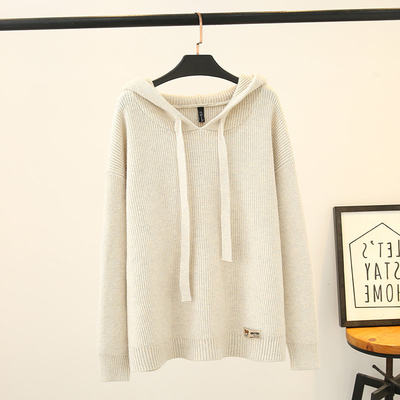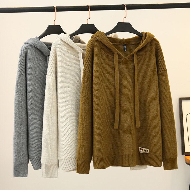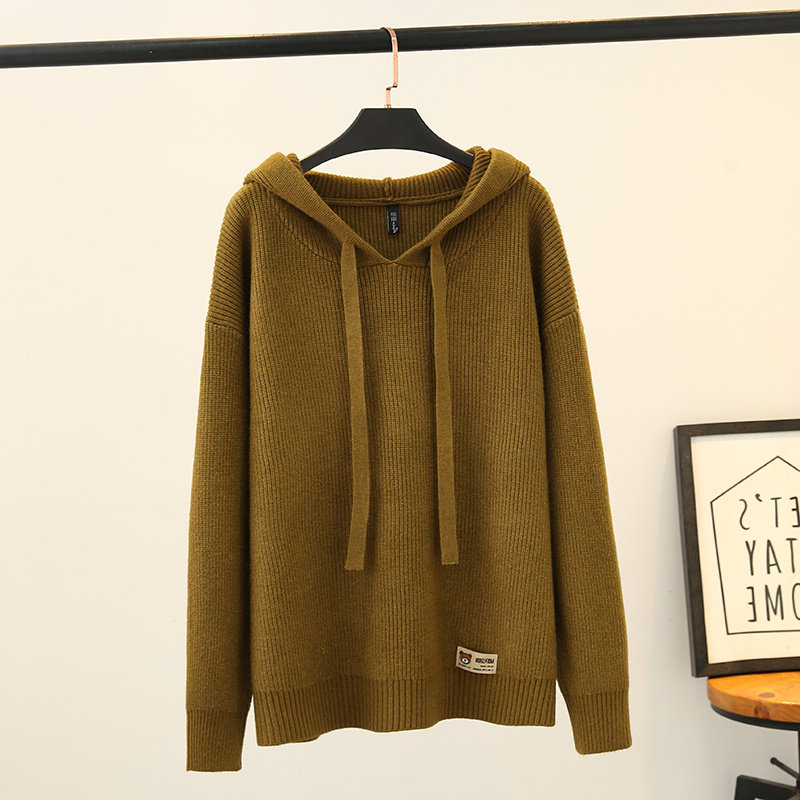 秋冬韩版胖mm中长款连帽针织毛衣衫300斤大码显瘦遮肉长袖上衣女