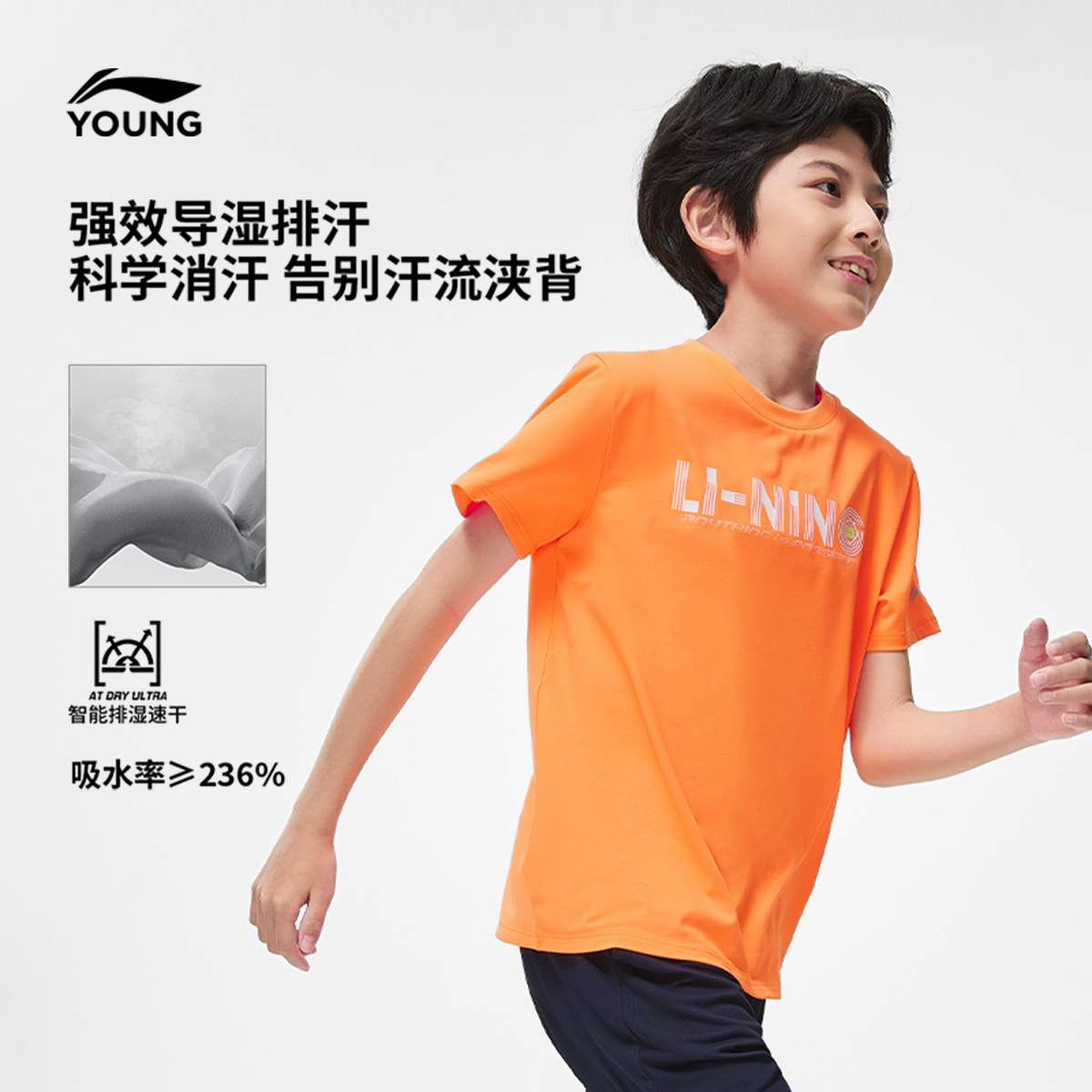 李宁童装短袖T恤男女小大童2025新款综合体能系列夏季圆领童装