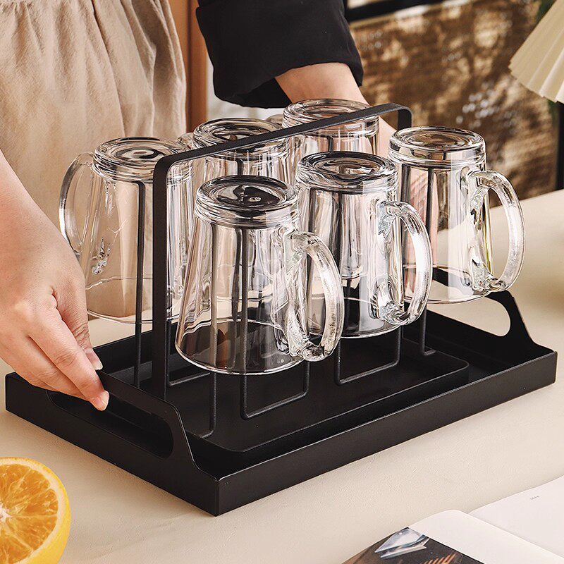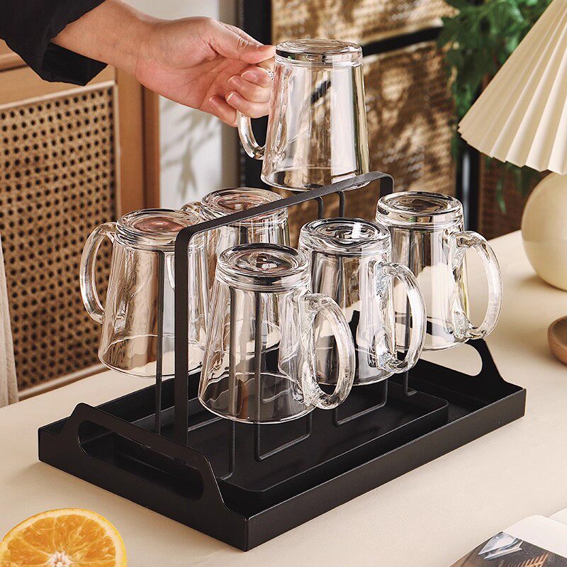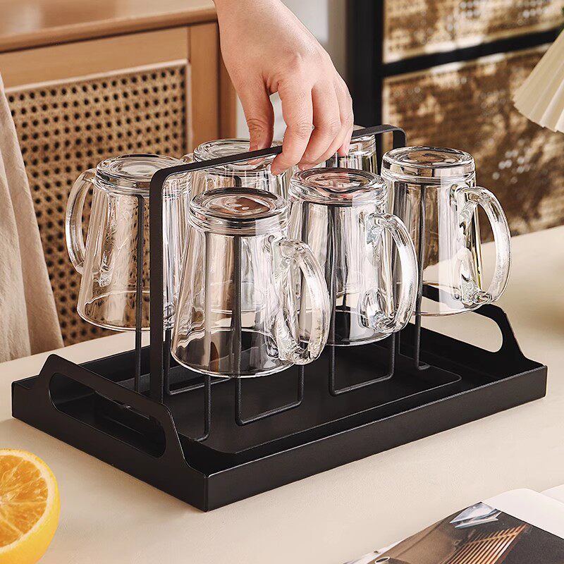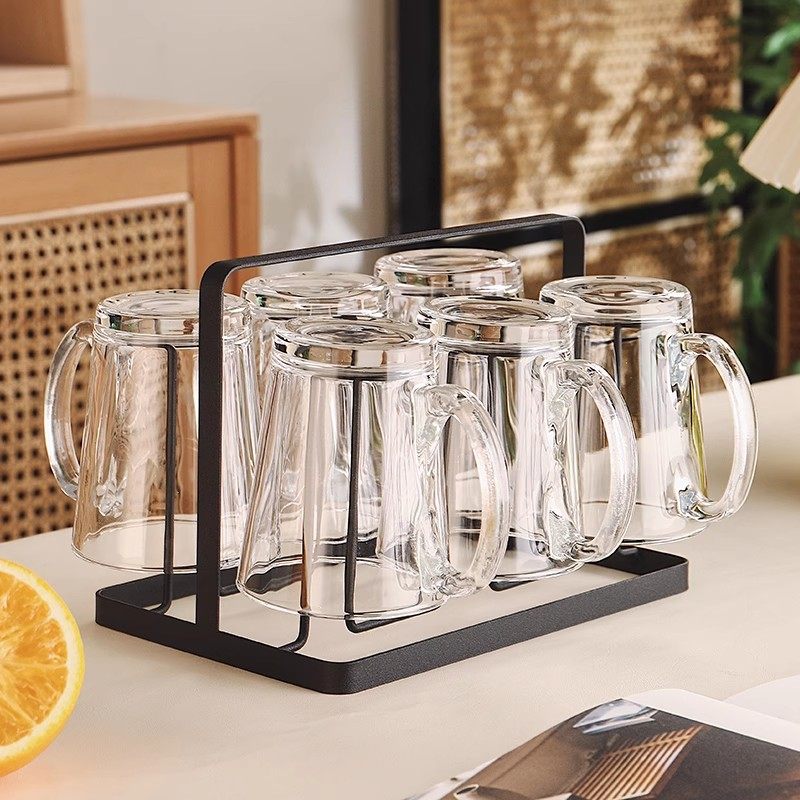耐高温玻璃杯套装家用客厅待客水杯带把手柄茶杯家庭喝水杯子杯架
