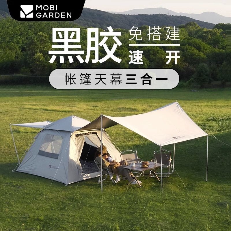 牧高笛自动帐篷户外速开黑胶天幕零动155野外野餐公园露营三合一