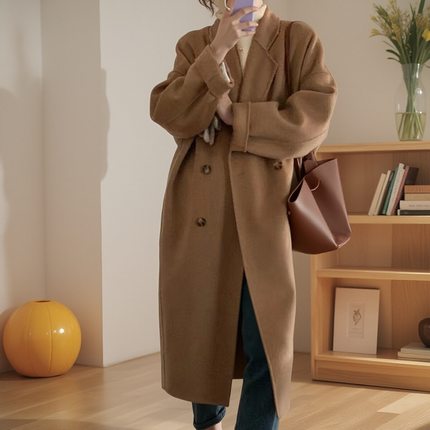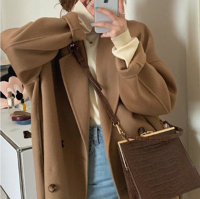 胖mm大码网红加厚呢子大衣冬装中长款显瘦韩系驼色毛呢外套200斤