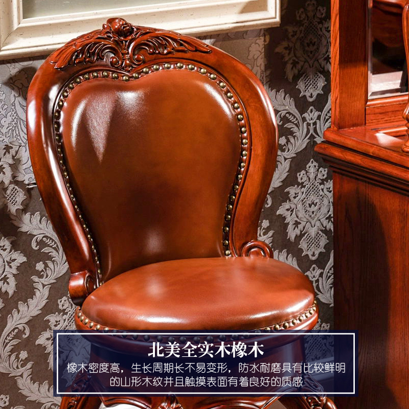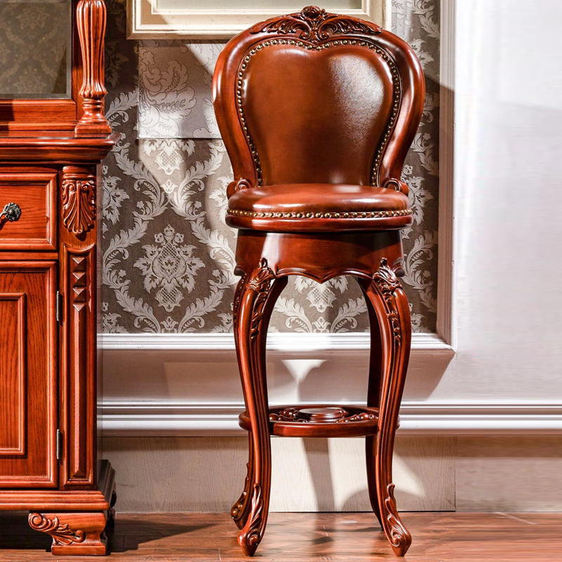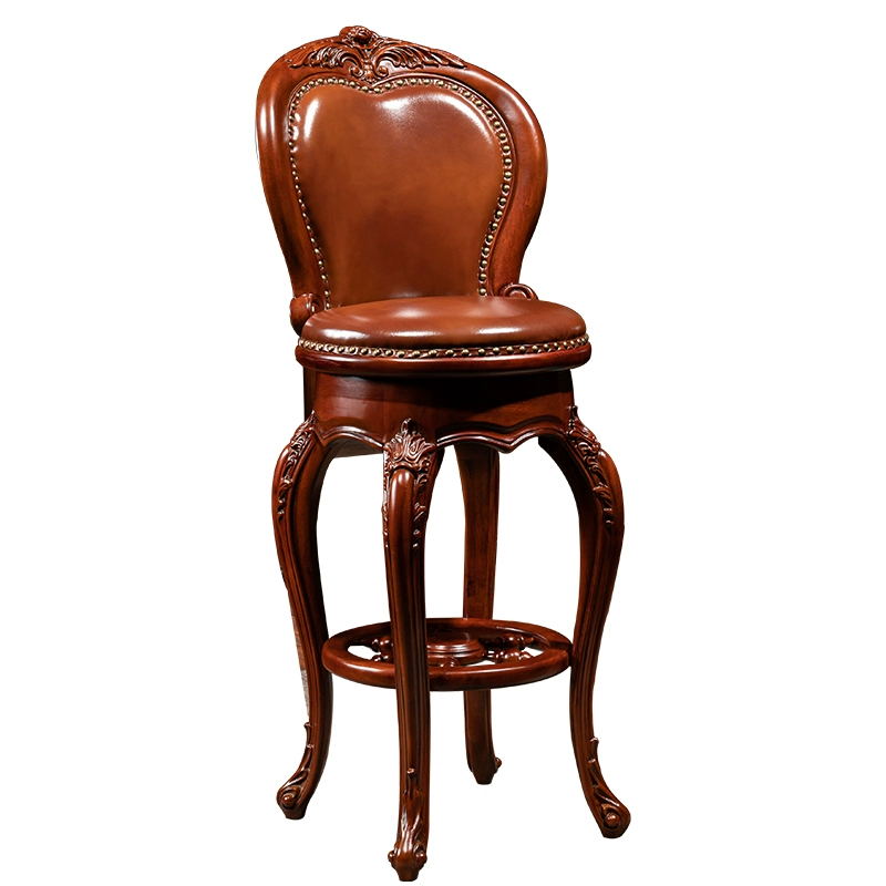 欧式吧凳 美式别墅全实木家用靠背复古旋转真皮高脚凳子吧台椅子