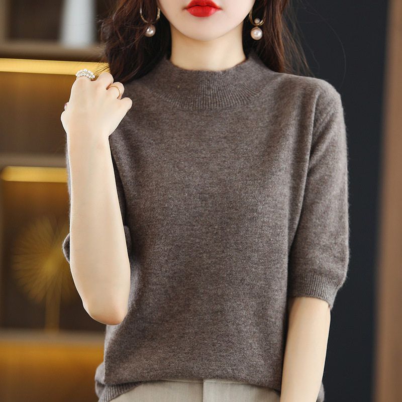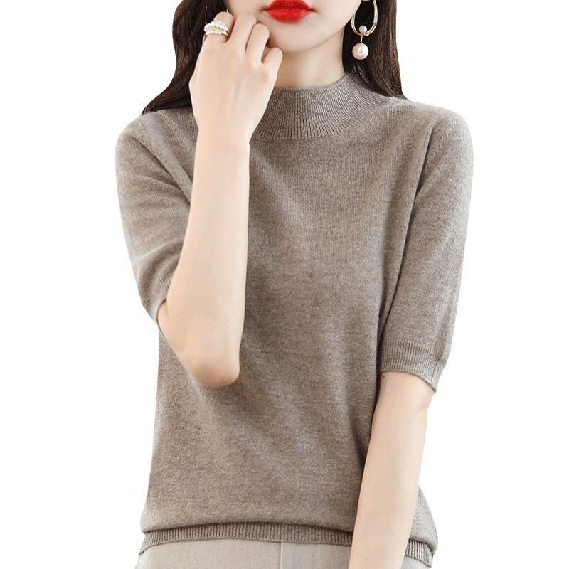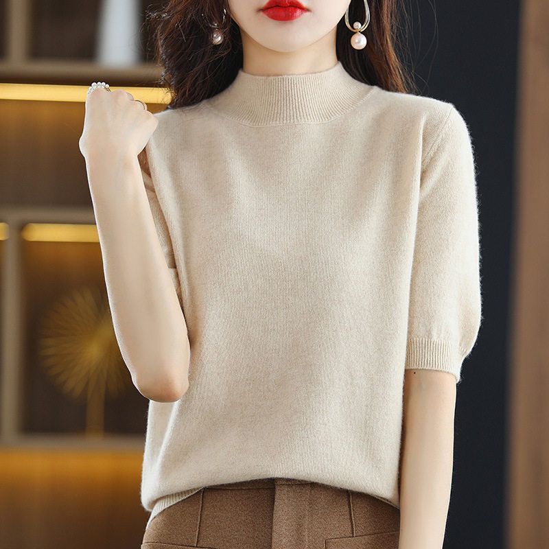 打底高领半优雅宽松搭女中袖气质针织衫薄款毛衣显瘦短袖五分袖内