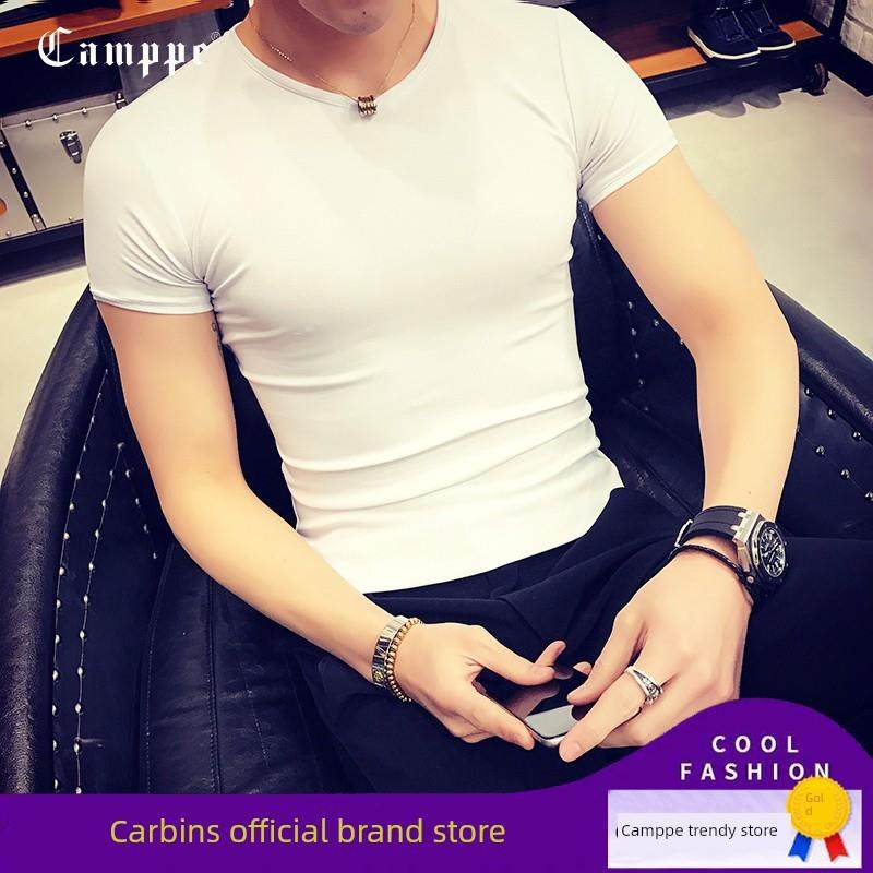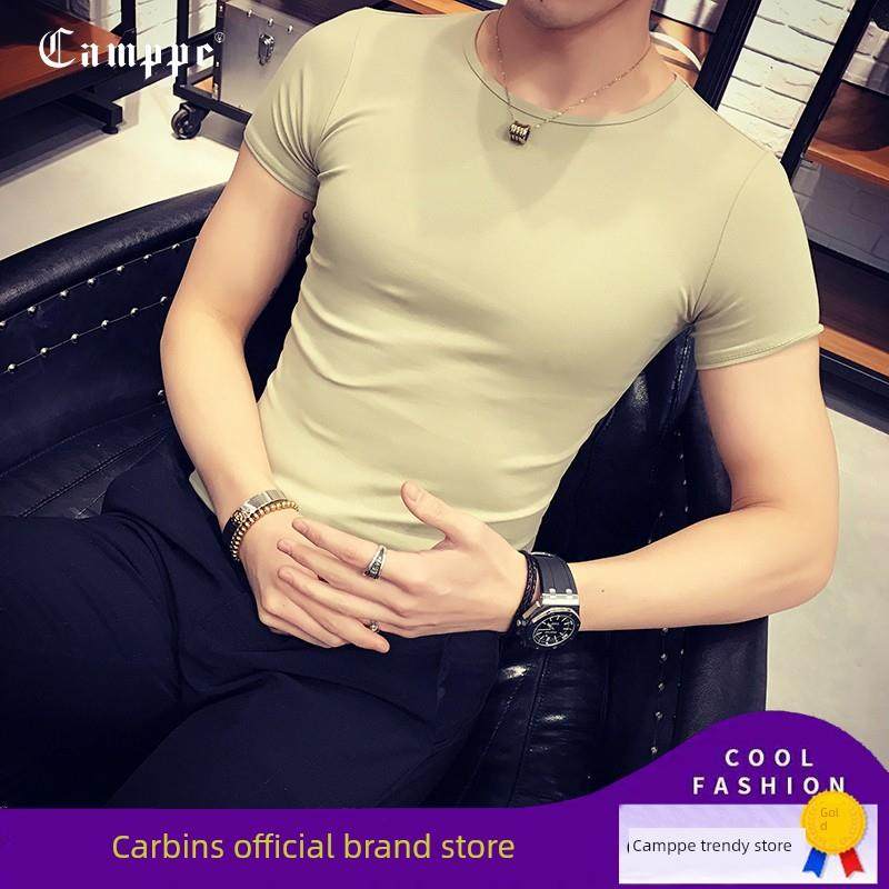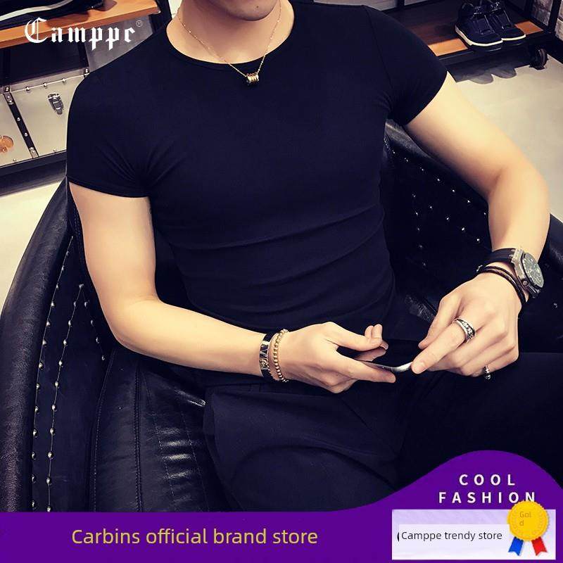 品牌男装夏季纯棉修身短袖T恤韩版潮流紧身打底衫简约款纯色上衣