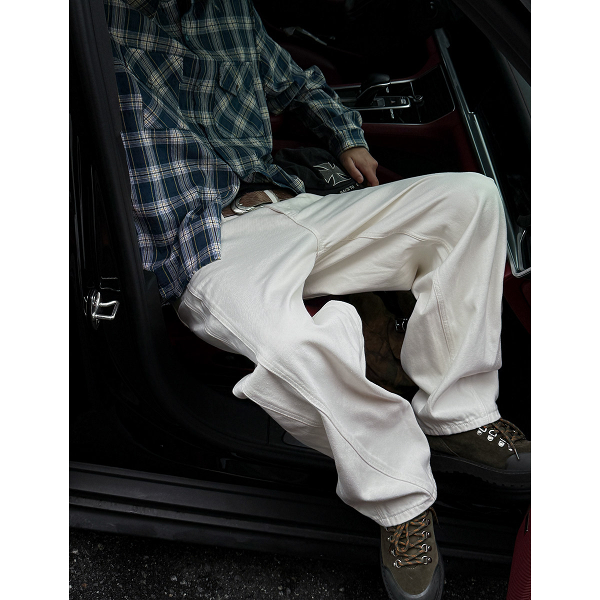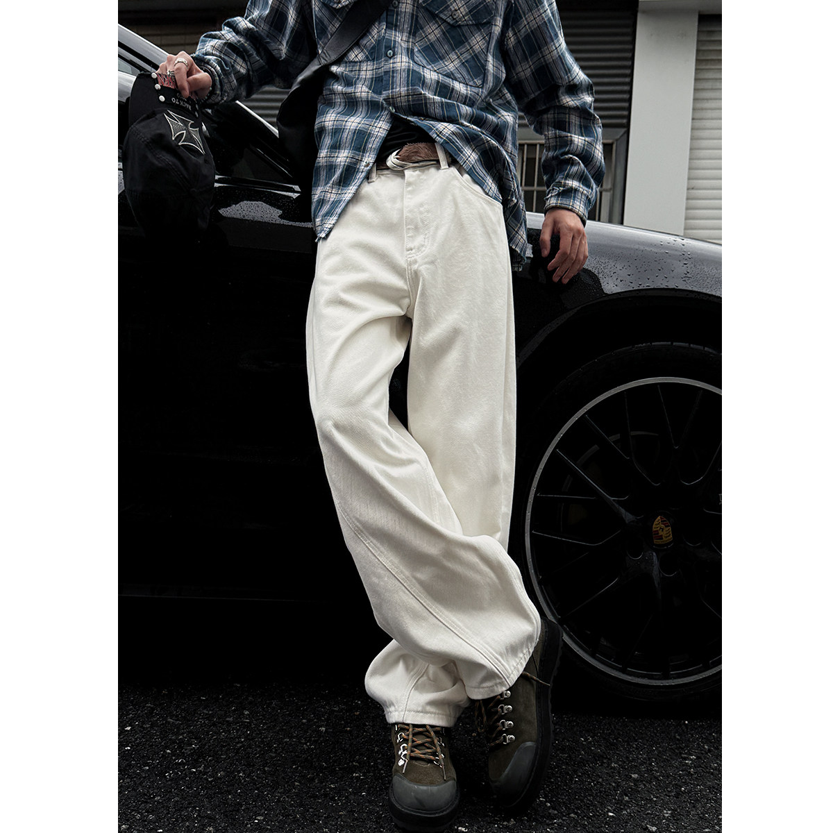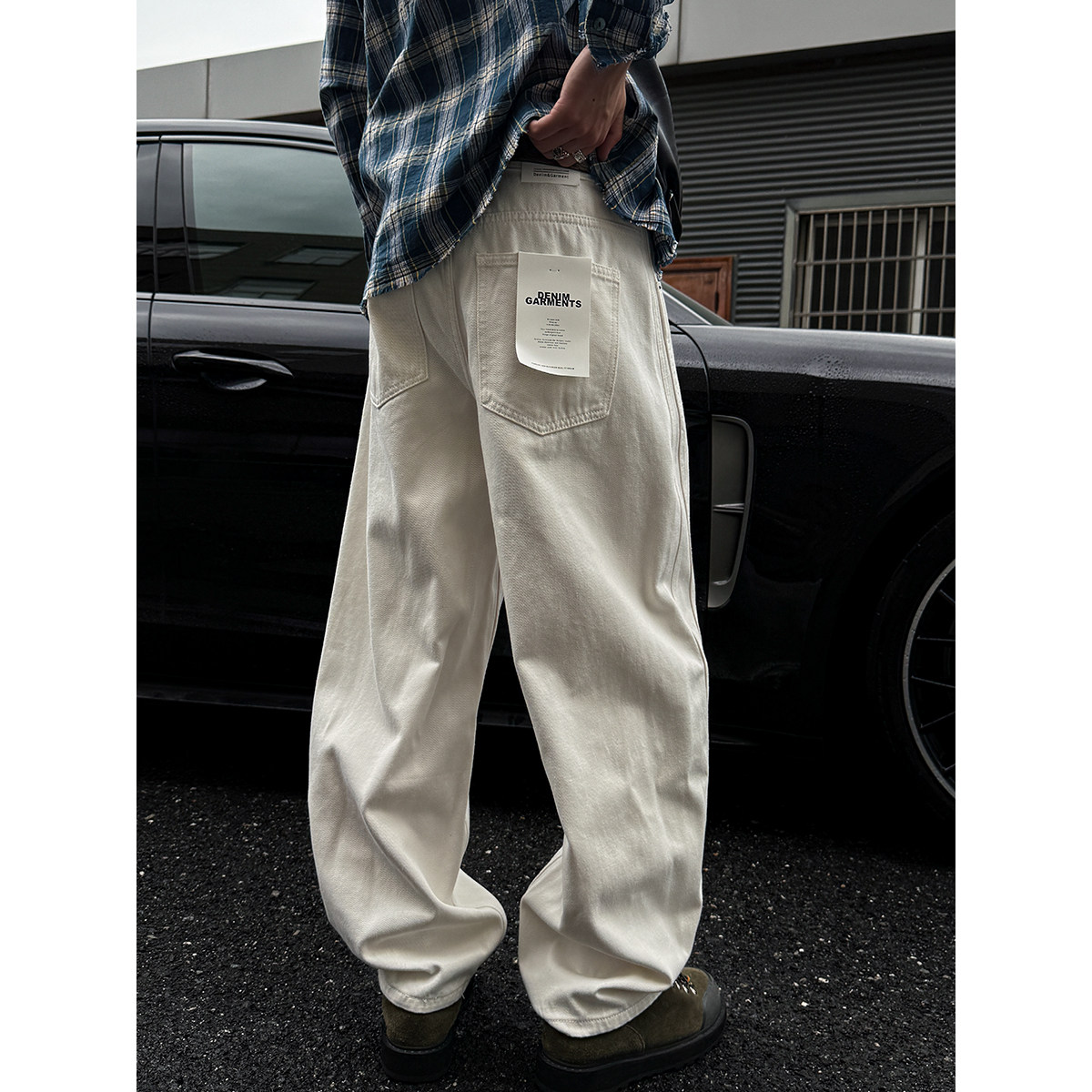 MANCHER 美式复古水洗解构弯刀米白牛仔裤男宽松廓形直筒哈伦长裤