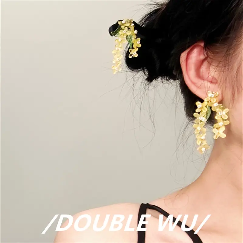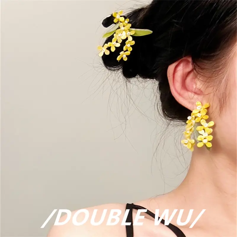 人闲桂花落925银针耳环小众设计长款文艺清新度假耳饰发簪