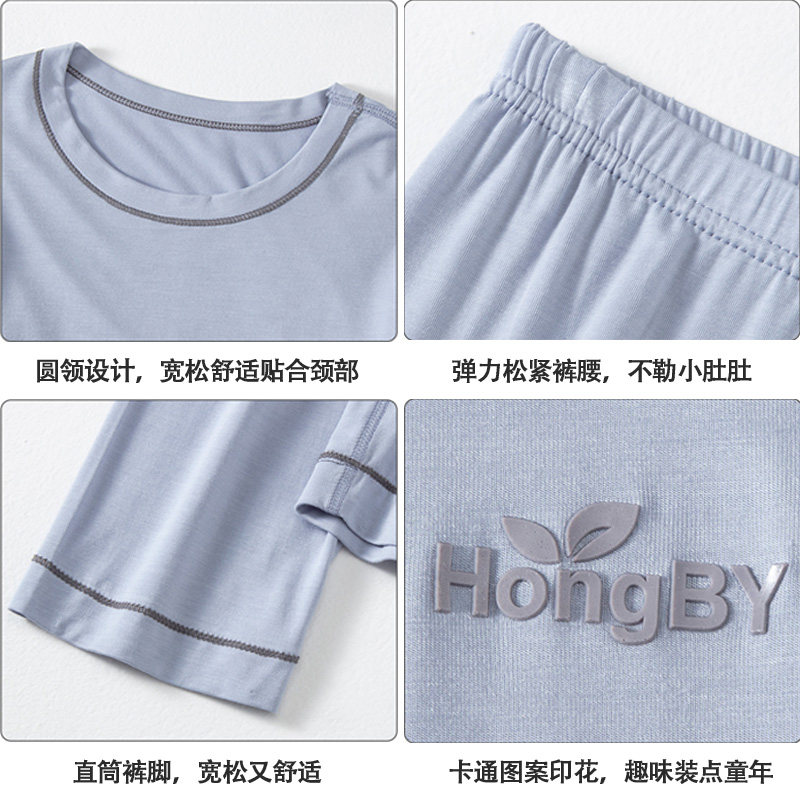 儿童冰丝睡衣套装莫代尔宝宝夏季薄款a类家居服男童长袖空调服新
