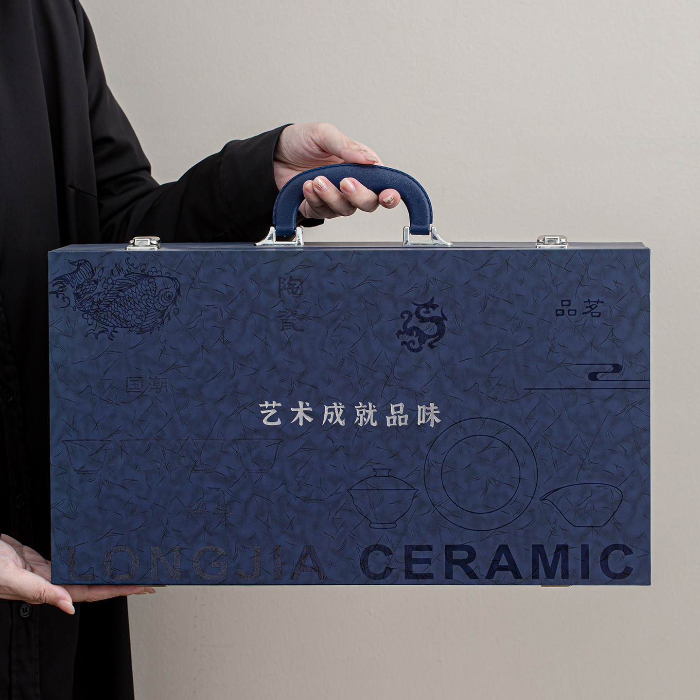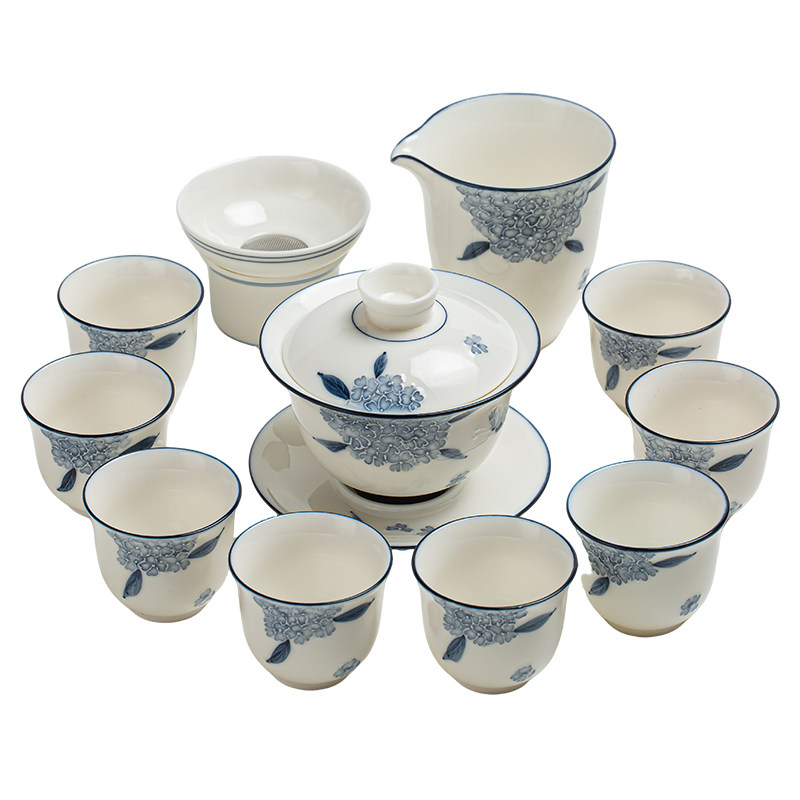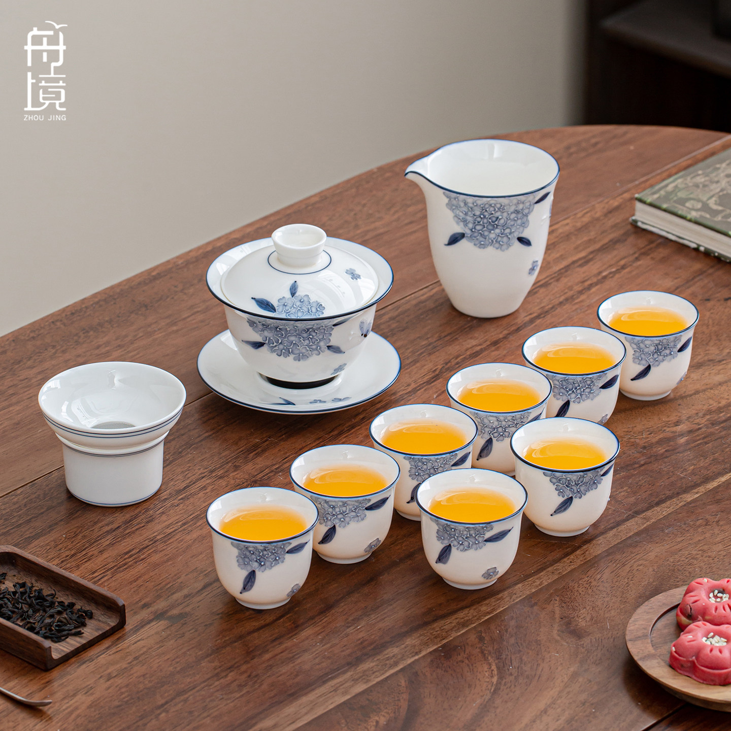 高档羊脂玉瓷盖碗茶具青花瓷手绘功夫茶具套装陶瓷茶杯整套礼盒装