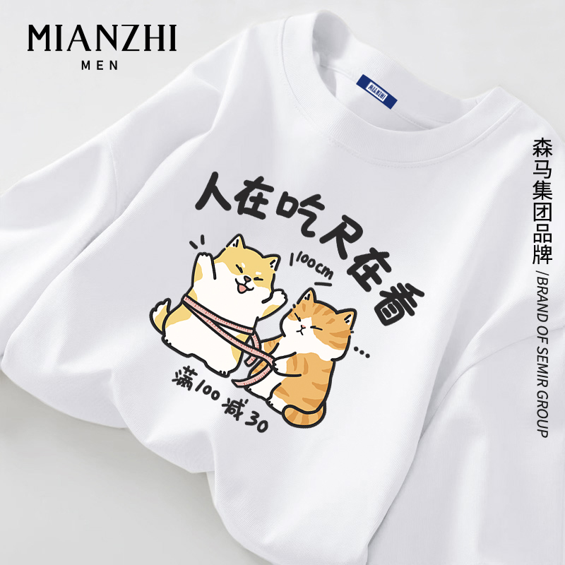 棉致纯棉米色长袖t恤男2025新款卡通趣味小狗青少年上衣