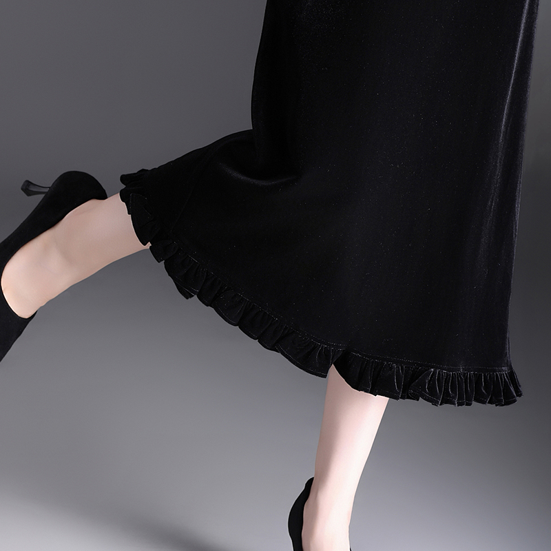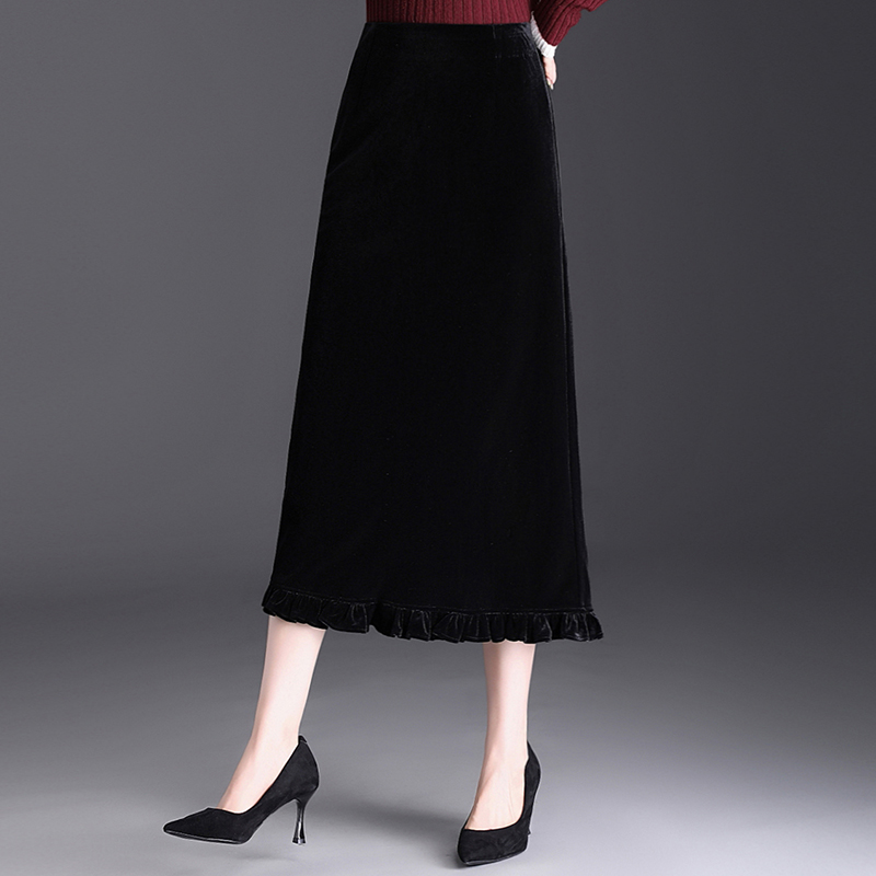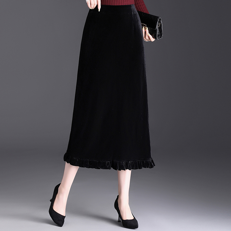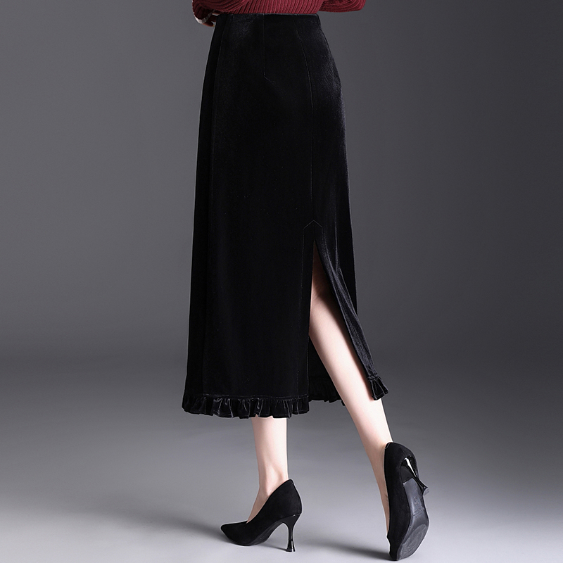 木耳边金丝绒一步裙半身裙女秋冬2025新款高腰显瘦中长款包臀裙子