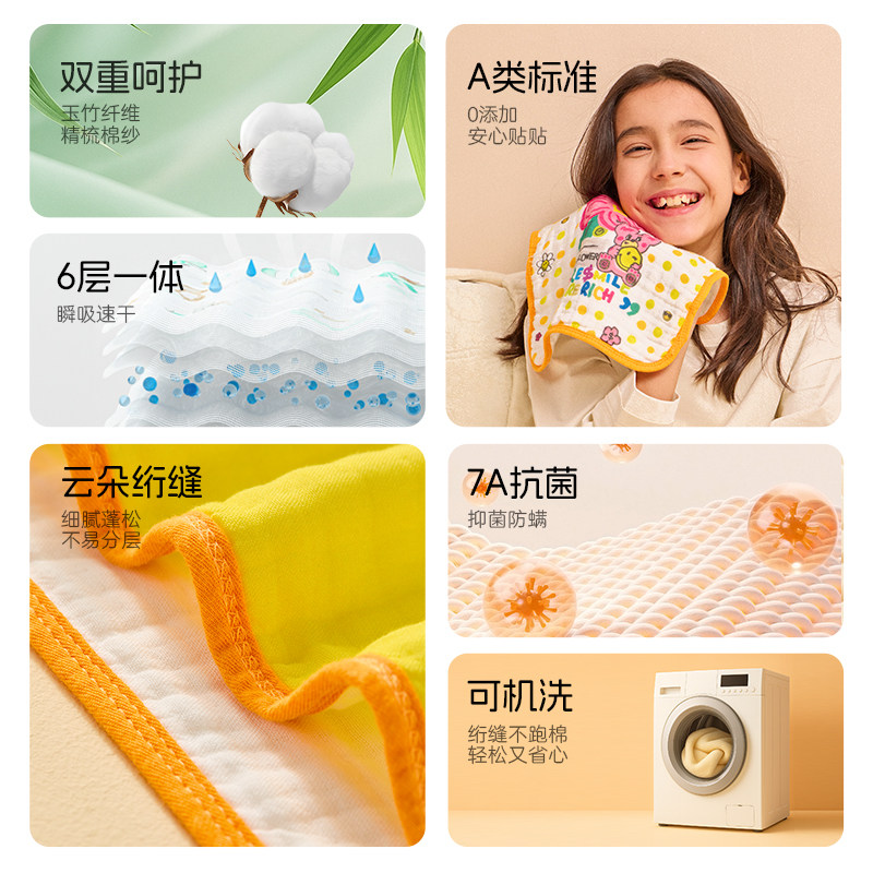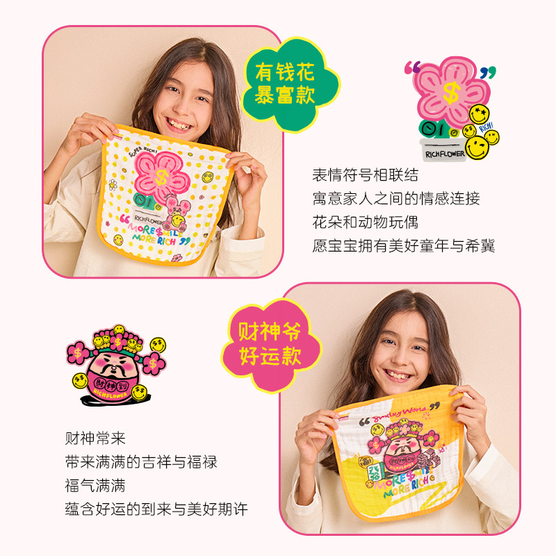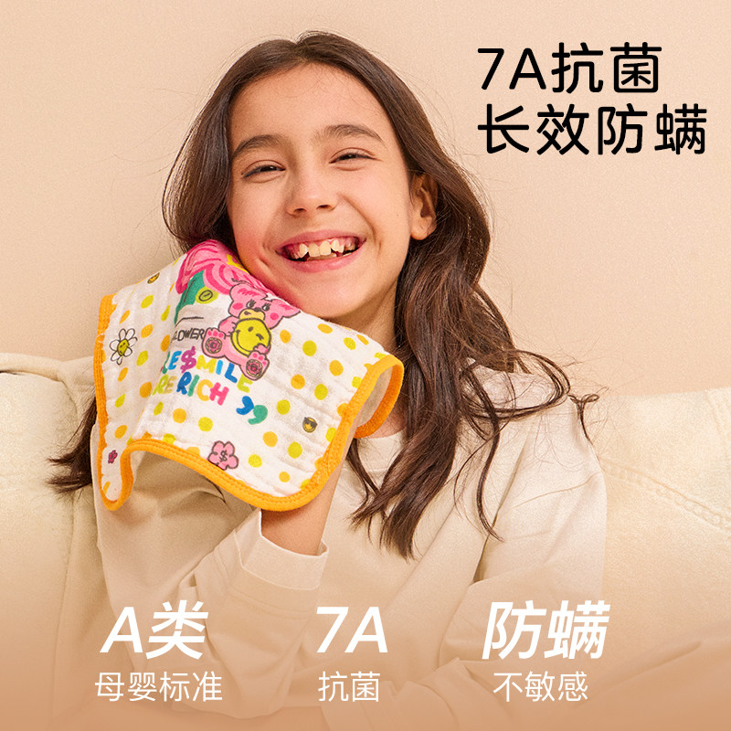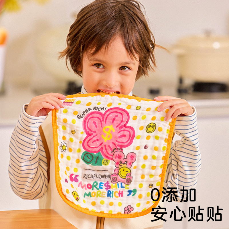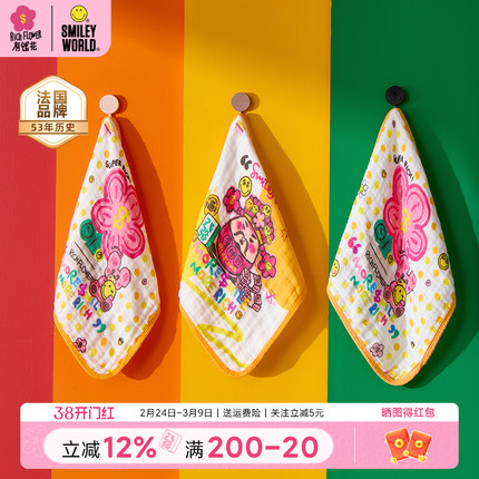 有钱花×法国SmileyWorld笑脸婴幼儿口水巾儿童小方巾洗擦脸毛巾