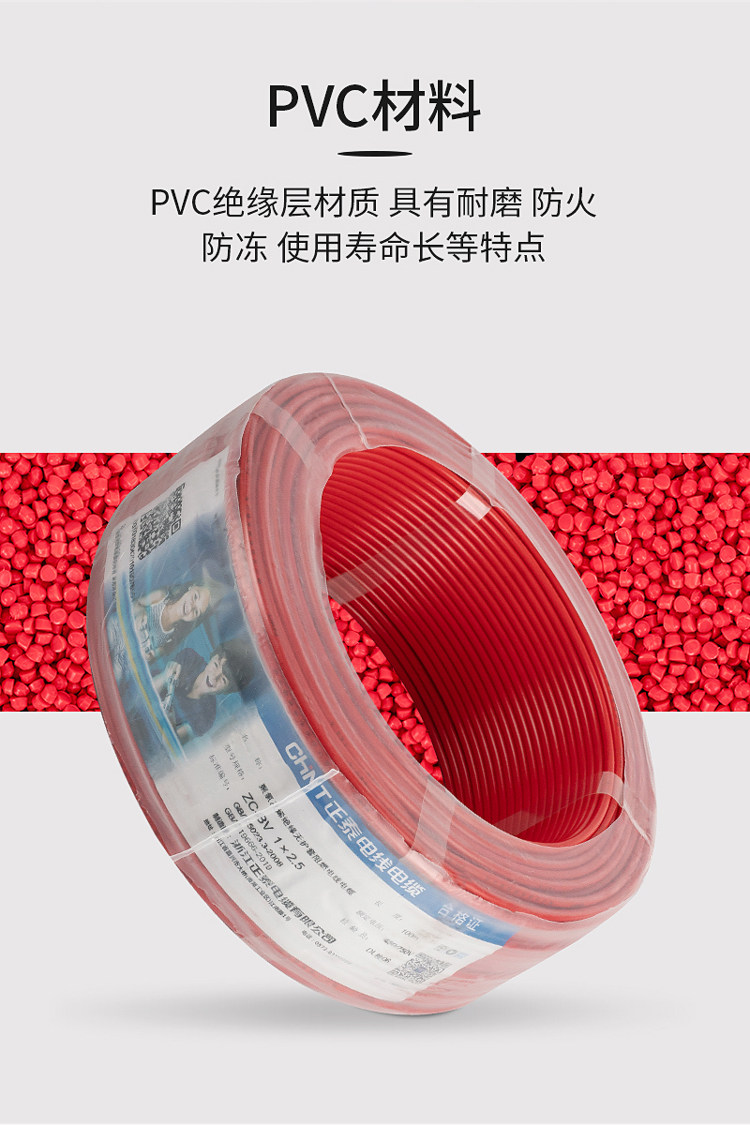 正泰国标阻燃ZC-BV家用1.5单芯2.5/4/6单股铜芯10/16平方家装电线