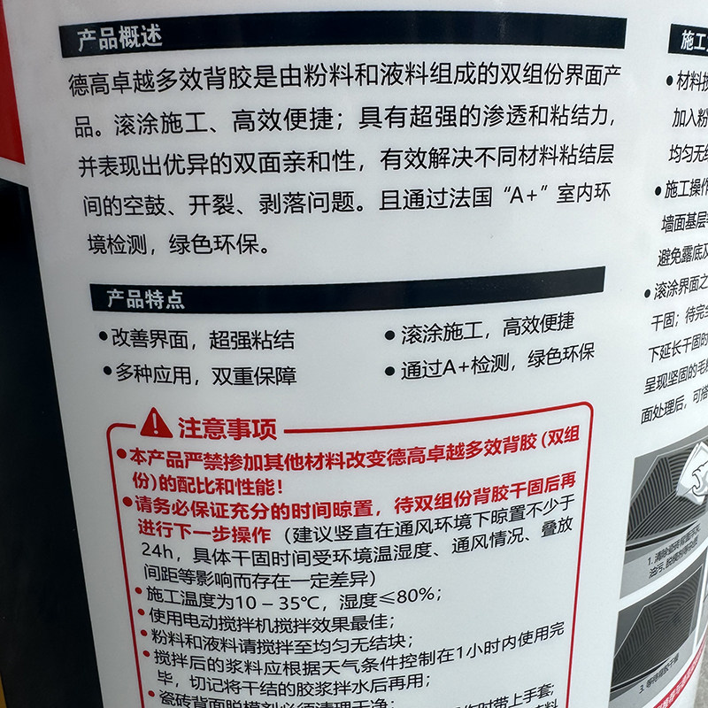 德高卓越多效双组份背胶高粘瓷砖胶泥粘接剂玻化砖强力造毛背涂胶