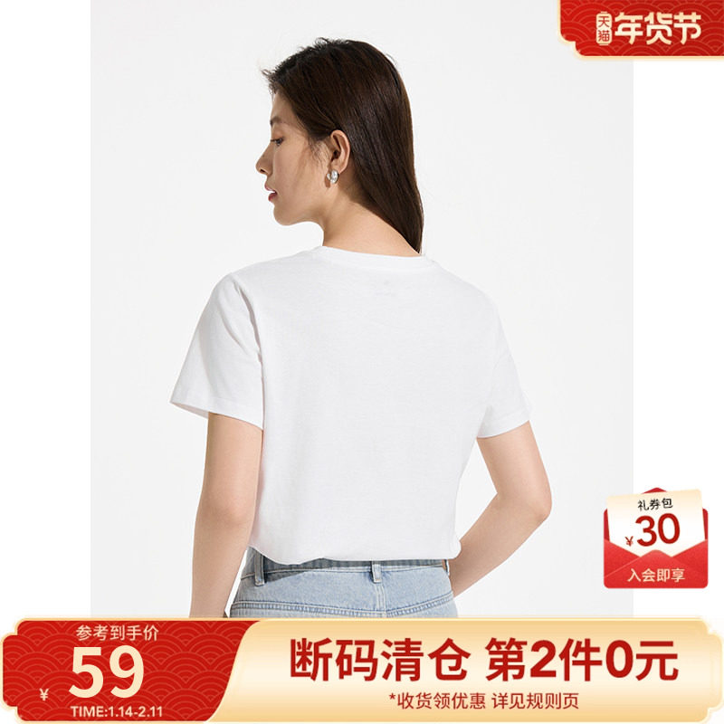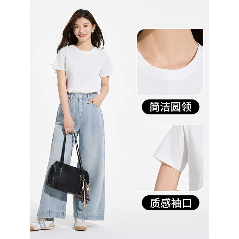 热风女士白色短袖T恤2025年夏季新款极简风纯色基础款内搭上衣