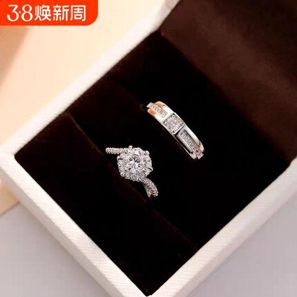 仿真婚戒结婚对戒情侣戒指婚礼钻戒一对婚纱照交换仪式人工镀金
