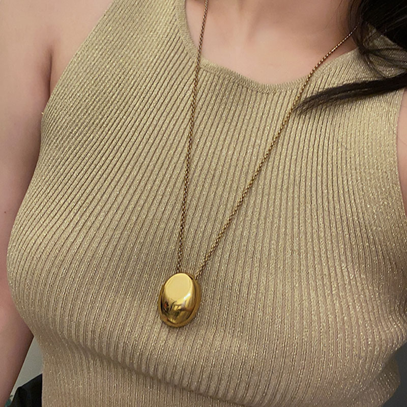 钛钢洗澡可带小众长款椭圆项链