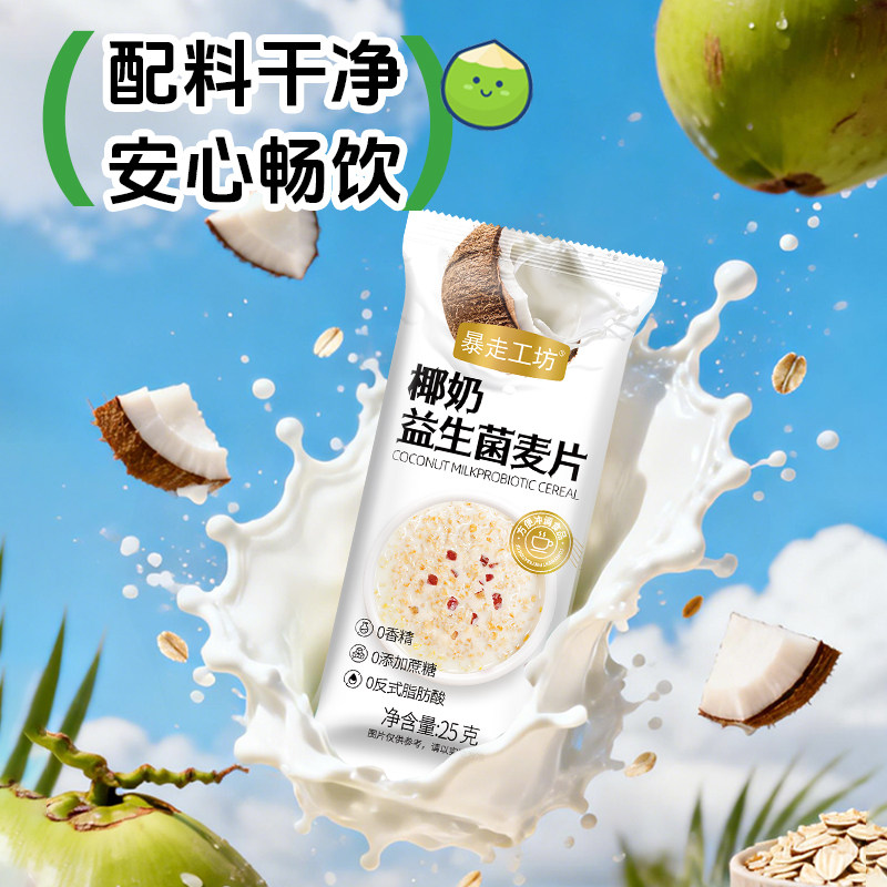 暴走工坊椰奶益生菌麦片燕麦片营养代餐冲泡即食早餐饱腹燕麦免煮