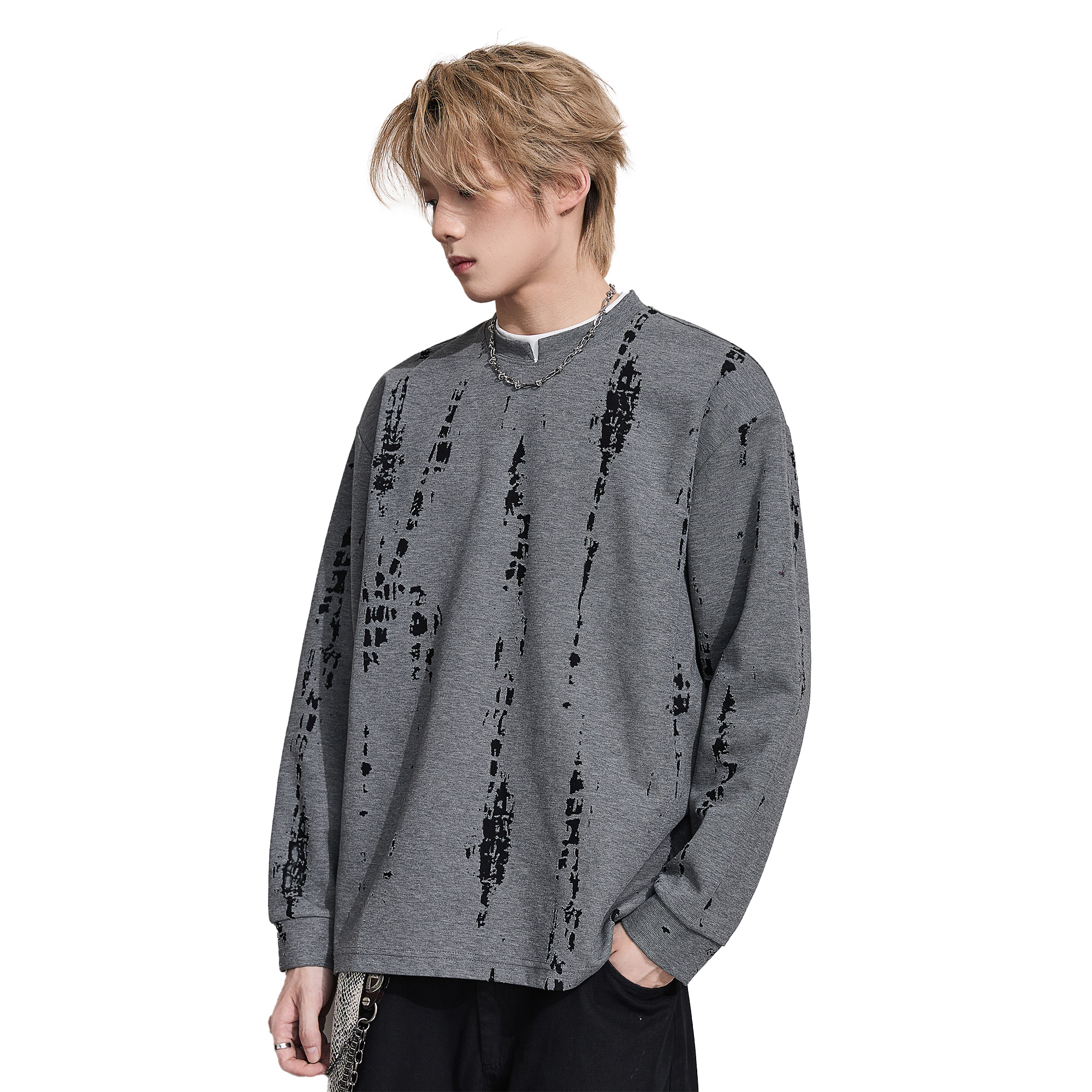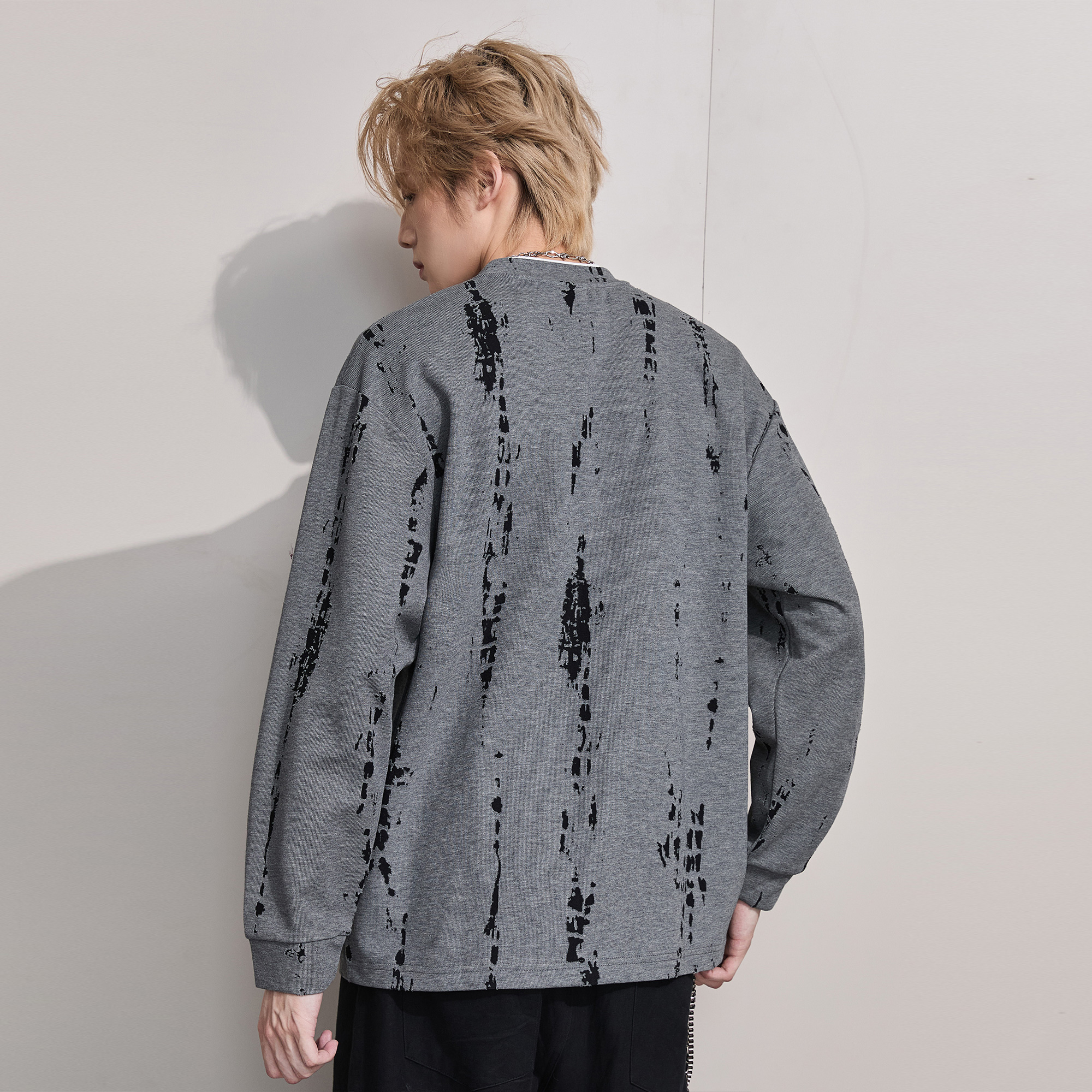 ALLIN 假两件落肩长袖T恤男秋冬季重磅宽松大码百搭情侣休闲上衣