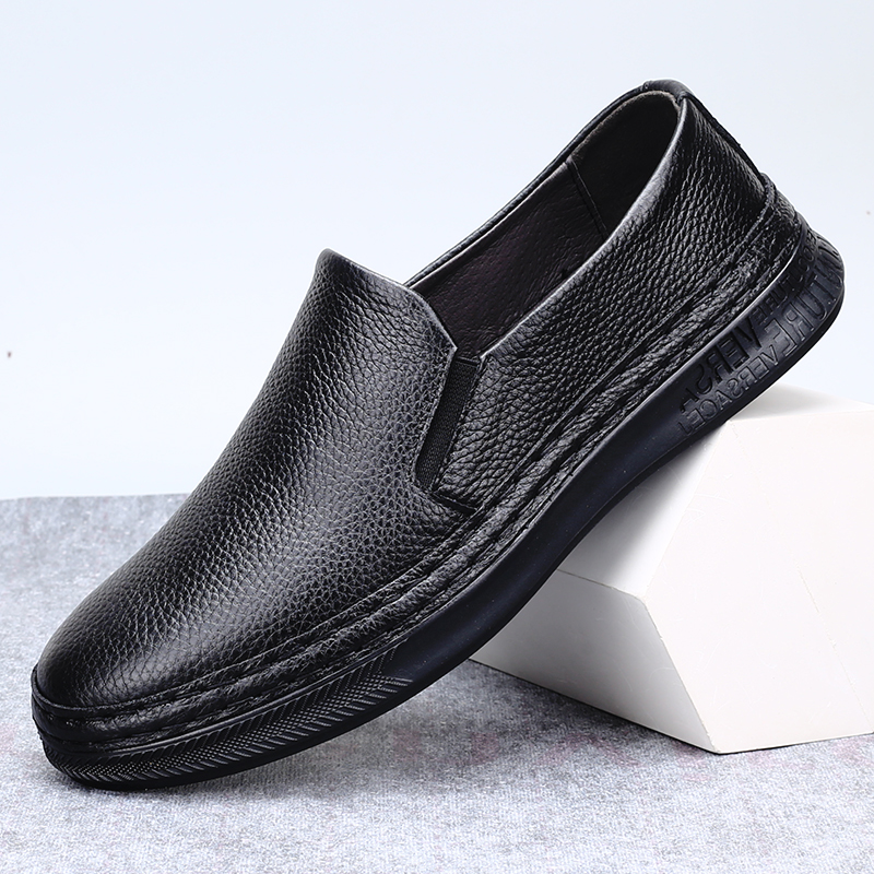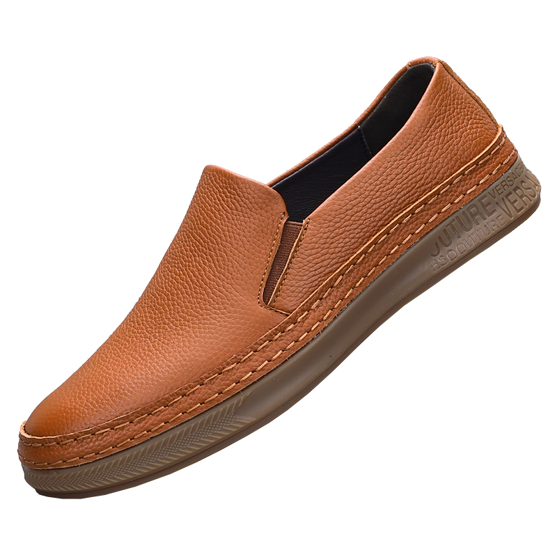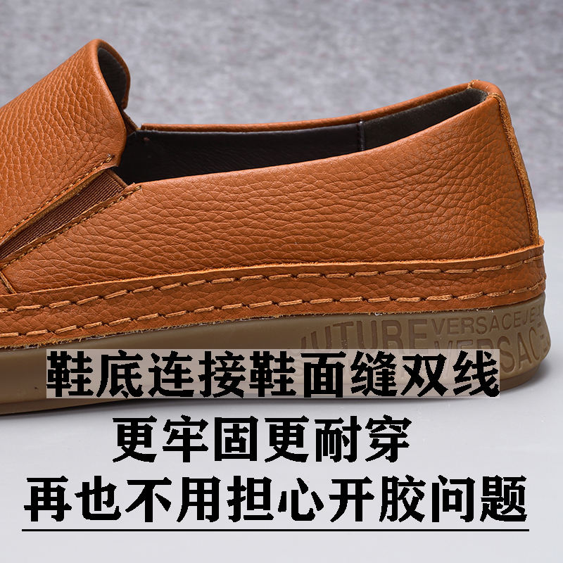 外贸男鞋真皮透气懒人鞋秋季男士休闲皮鞋纯牛皮软底一脚蹬开车鞋