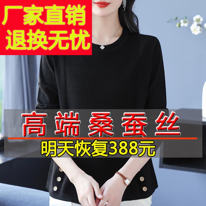 胖mm大码女装2024新款桑蚕丝长袖t恤宽松妈妈秋装针织上衣打底衫