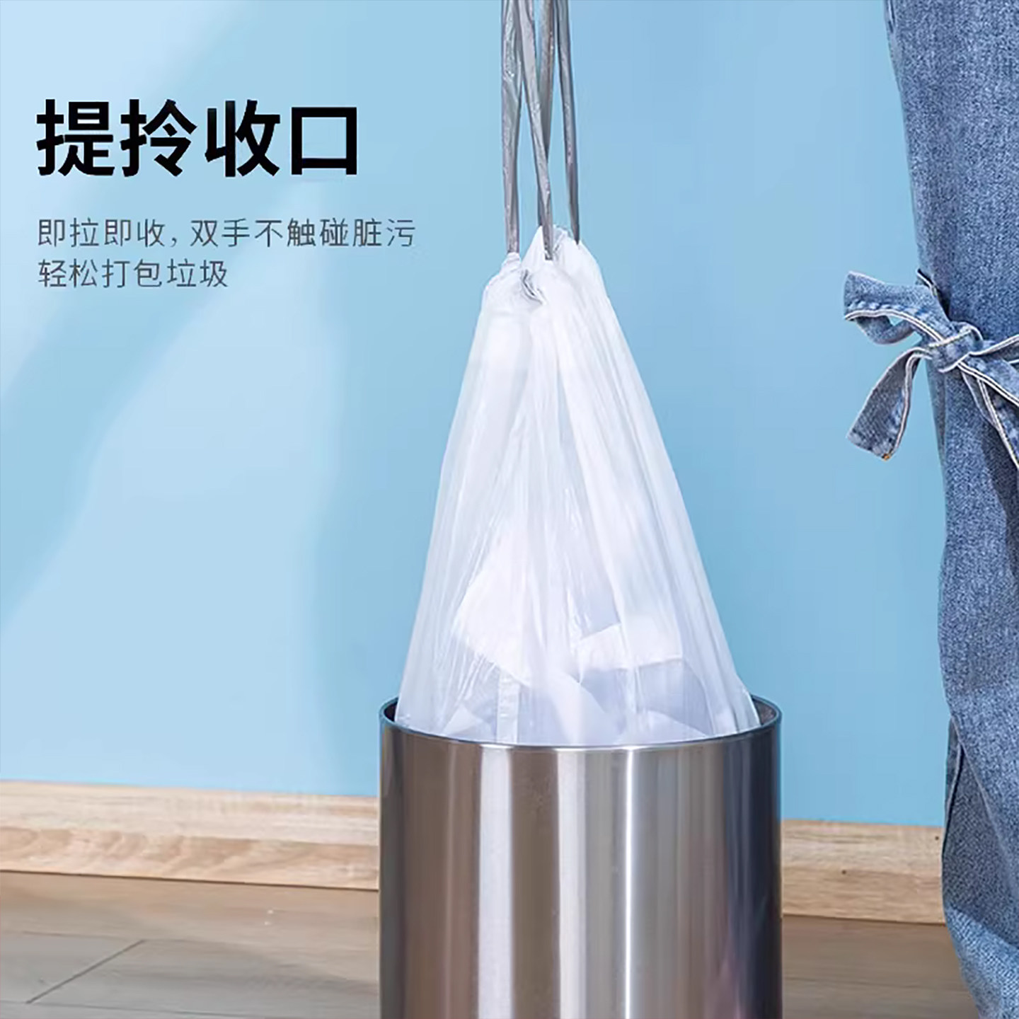 得力垃圾袋加厚抽绳手提式小号拉级袋商用办公室拉抽绳黑色塑料袋