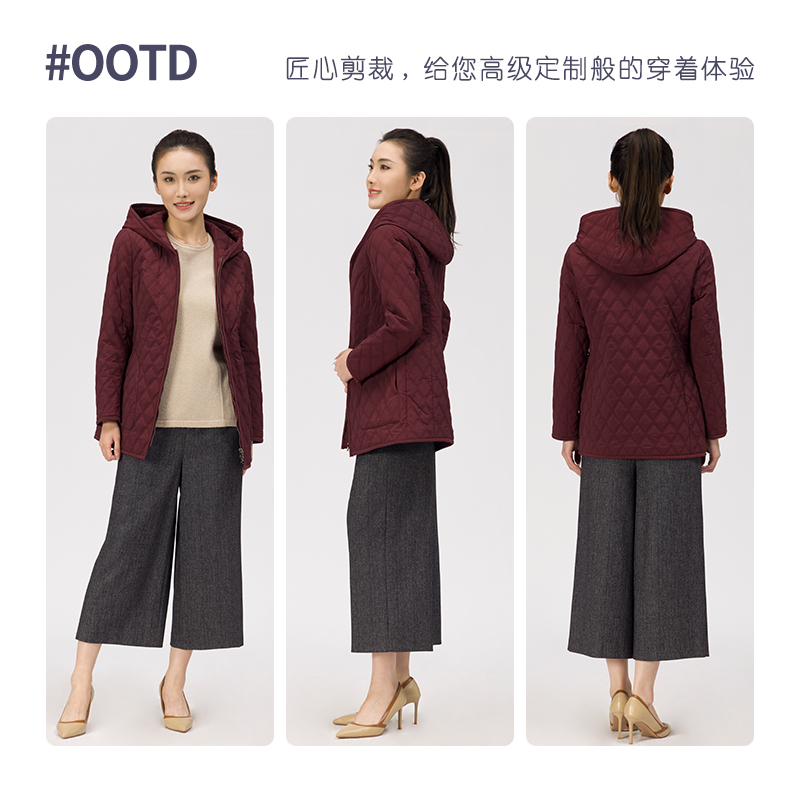 靓诺女装棉服女红色短款连帽薄冬季新年棉衣冬季修身外套LM18457A