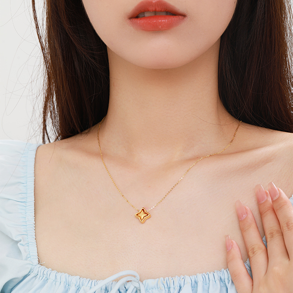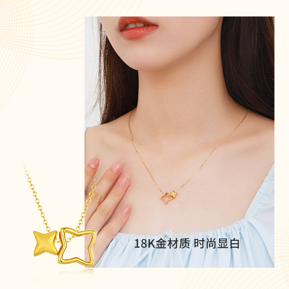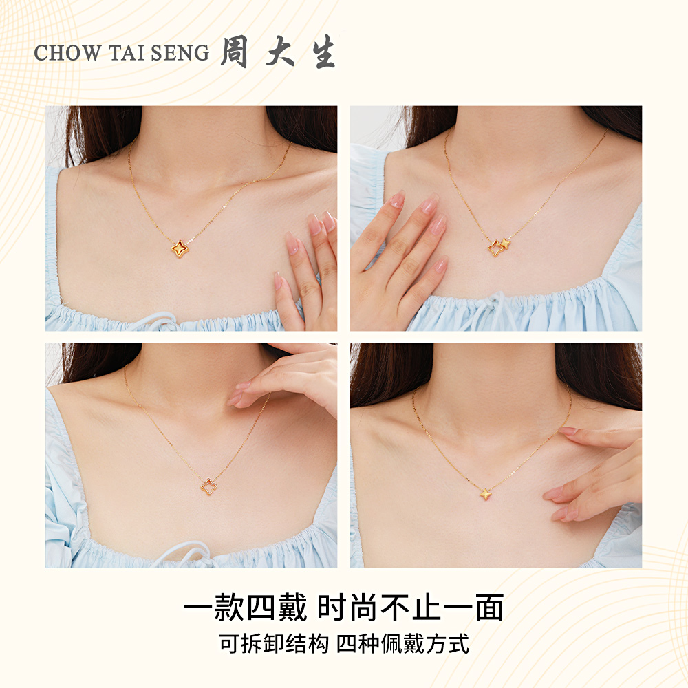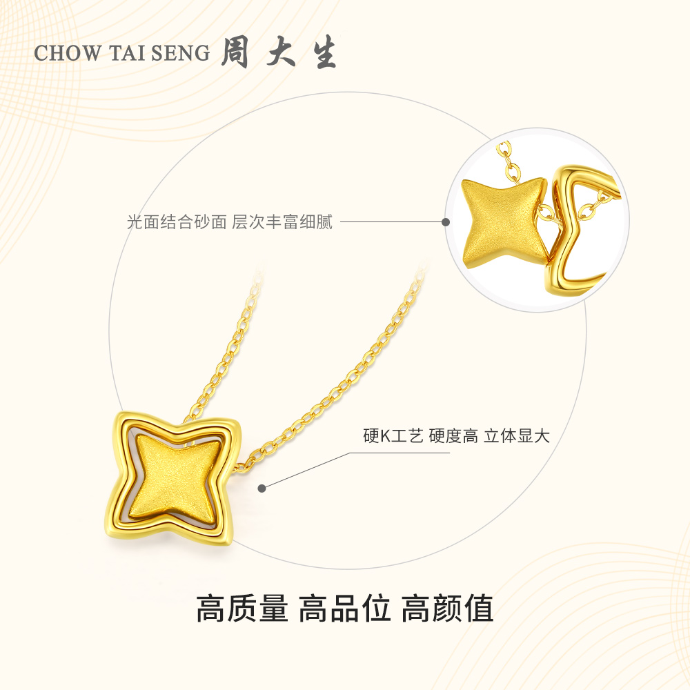 周大生黄18K金项链彩金套链四芒星吊坠锁骨链颈链生日礼物送女友