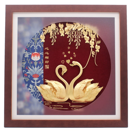 结婚礼物心心相印天鹅金箔画送新人新娘闺蜜朋友创意新婚轻奢摆件