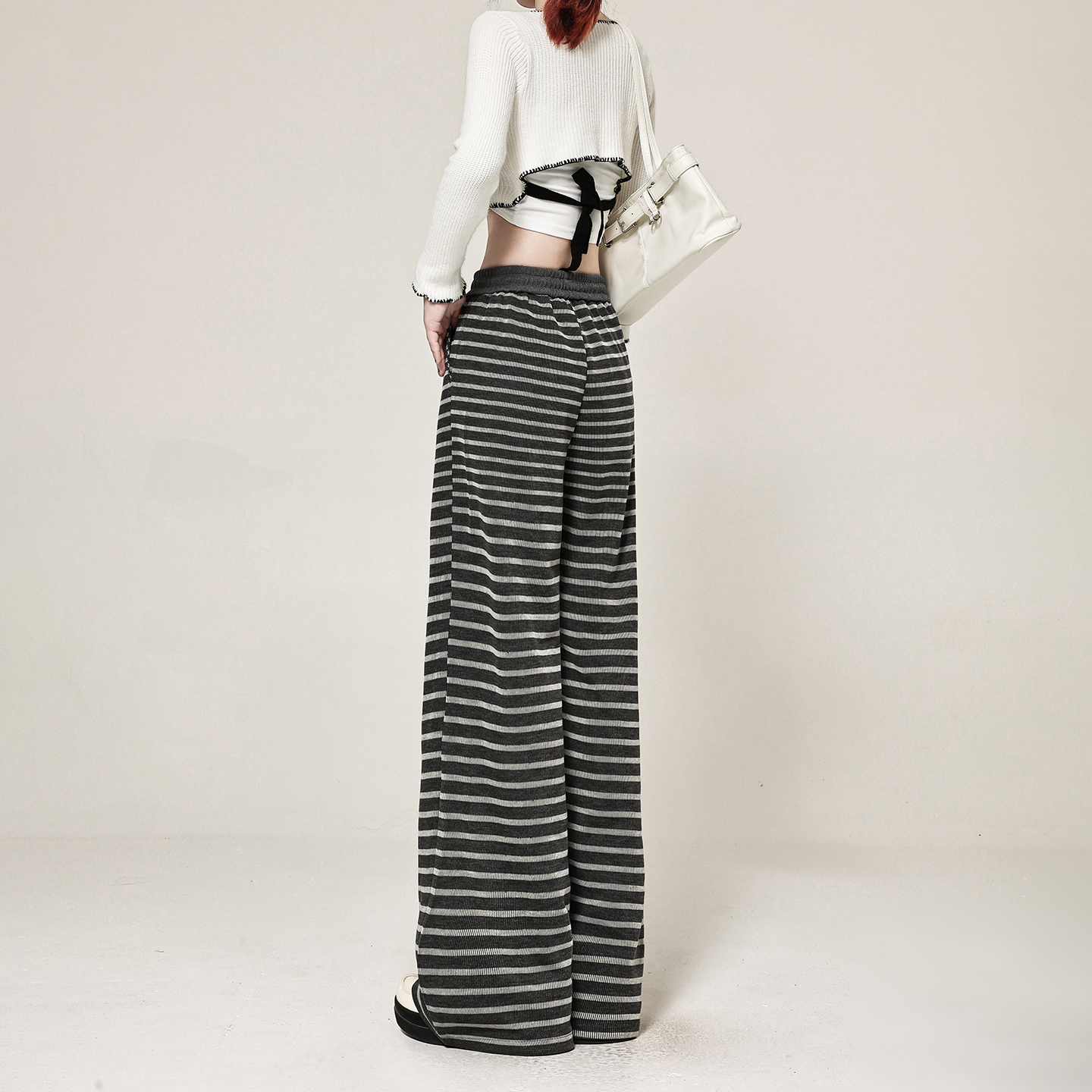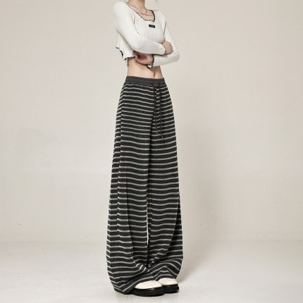 深灰色高腰条纹宽松休闲裤阔腿裤